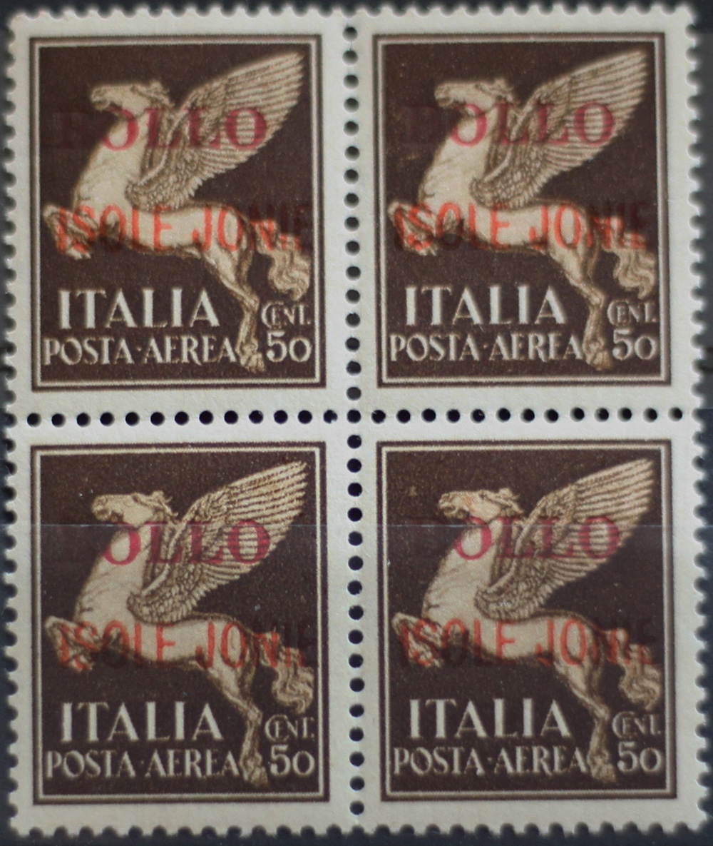 1941 Isole Jonie posta aerea N.1 in quartina soprastampati bollo senza...