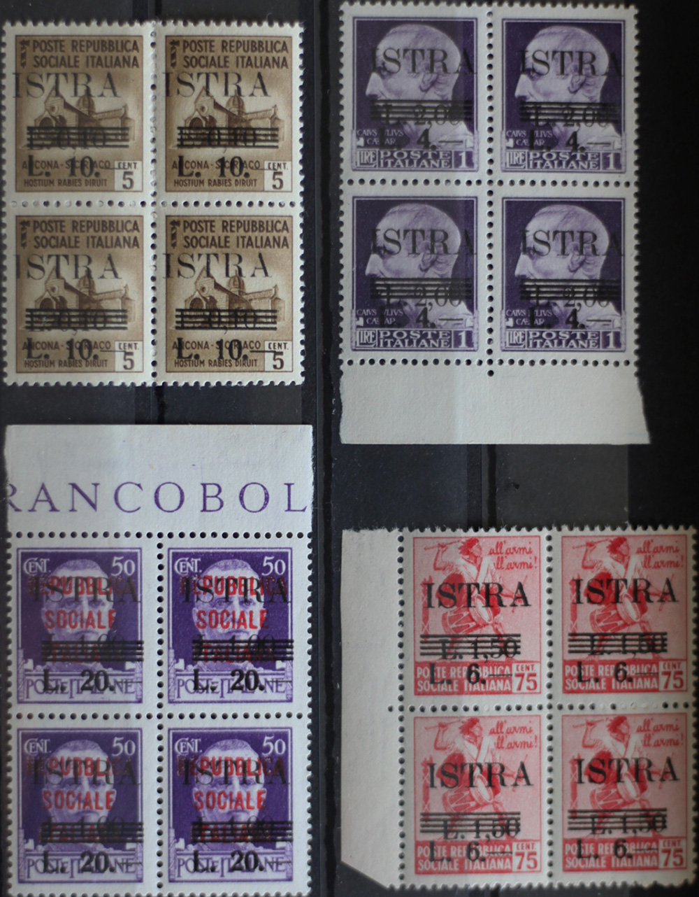 1945 Istria/Pola num.37-40 in quartina senza linguella Prezzo di catalogo : 480 € +