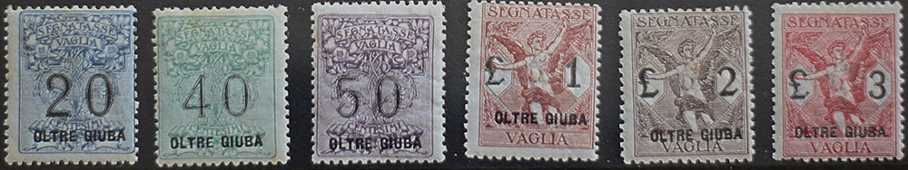 1925 Oltre Giuba segnatasse per vaglia num.1-6 senza linguella Prezzo di...