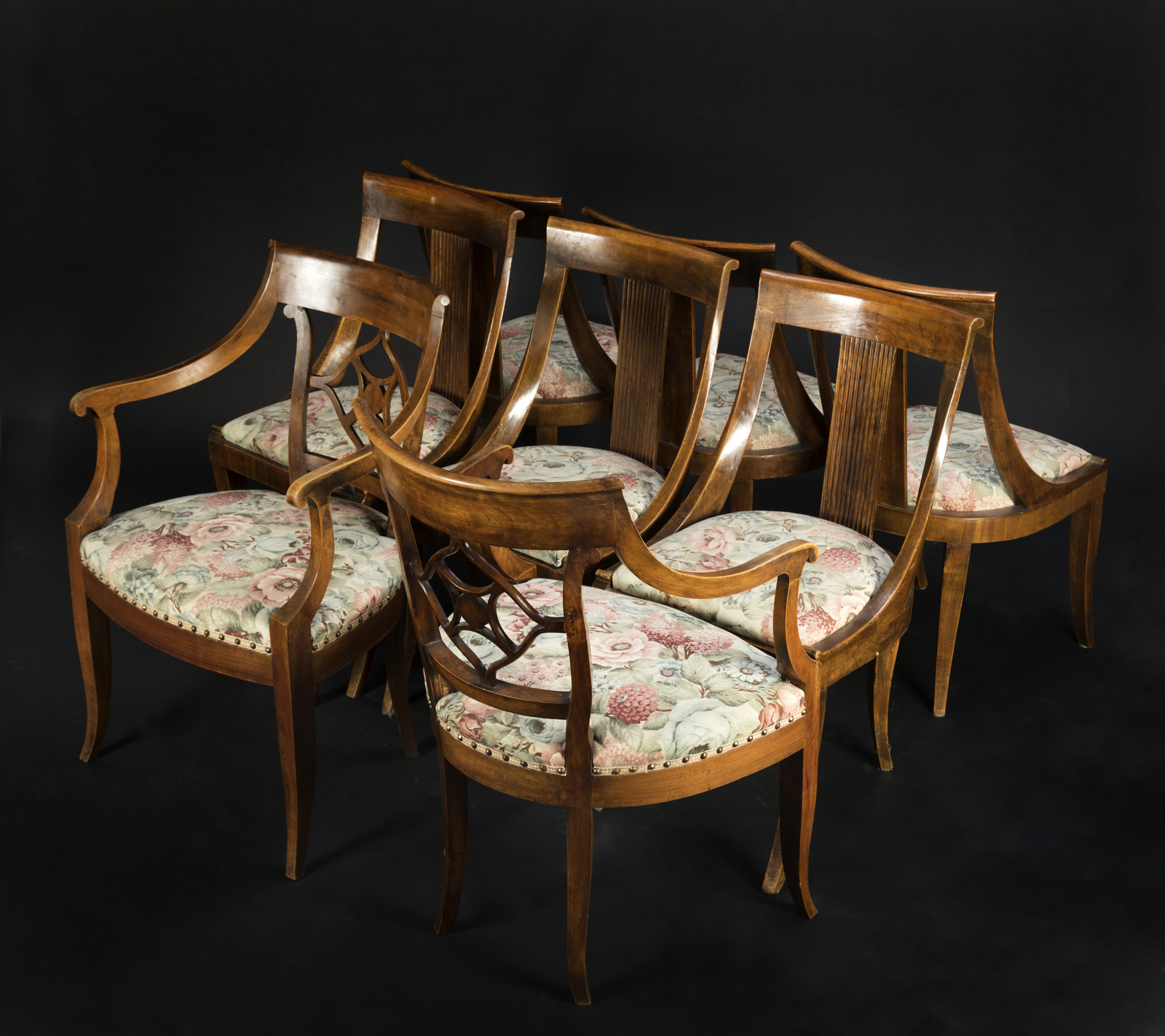 MANIFATTURA LOMBARDA DEL XIX SECOLO Lotto composto da sei sedie e due...
