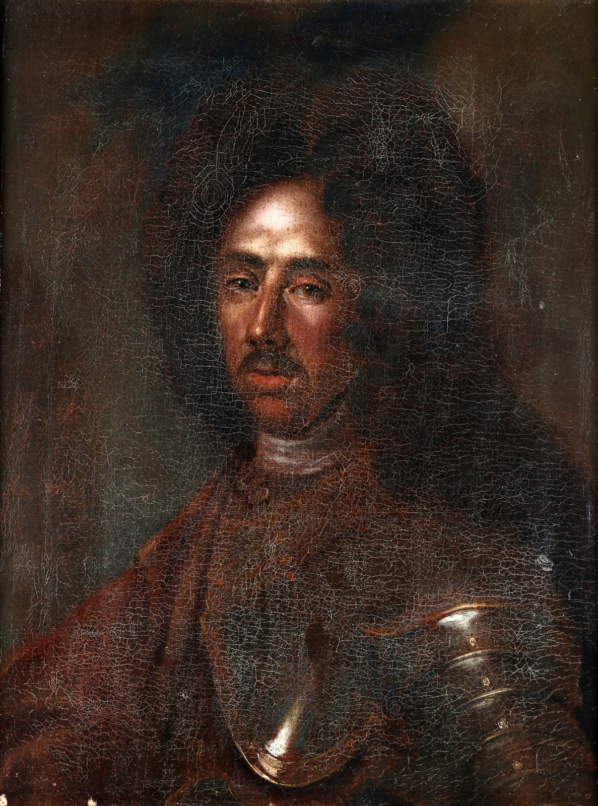 ARTISTA DEL XVII SECOLO Ritratto d'uomo con armatura. Olio su tela . Cm 52,00 x 68,50. . Cornice presente