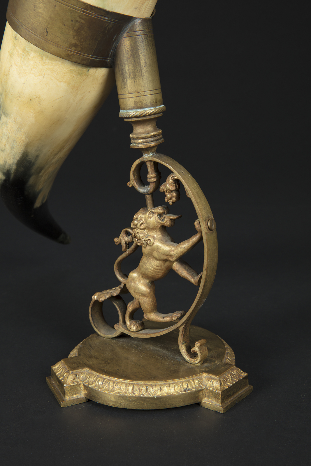 Lot 56 | MANIFATTURA NORD EUROPEA DEL XIX SECOLO Corno di bufalo montato su base in...