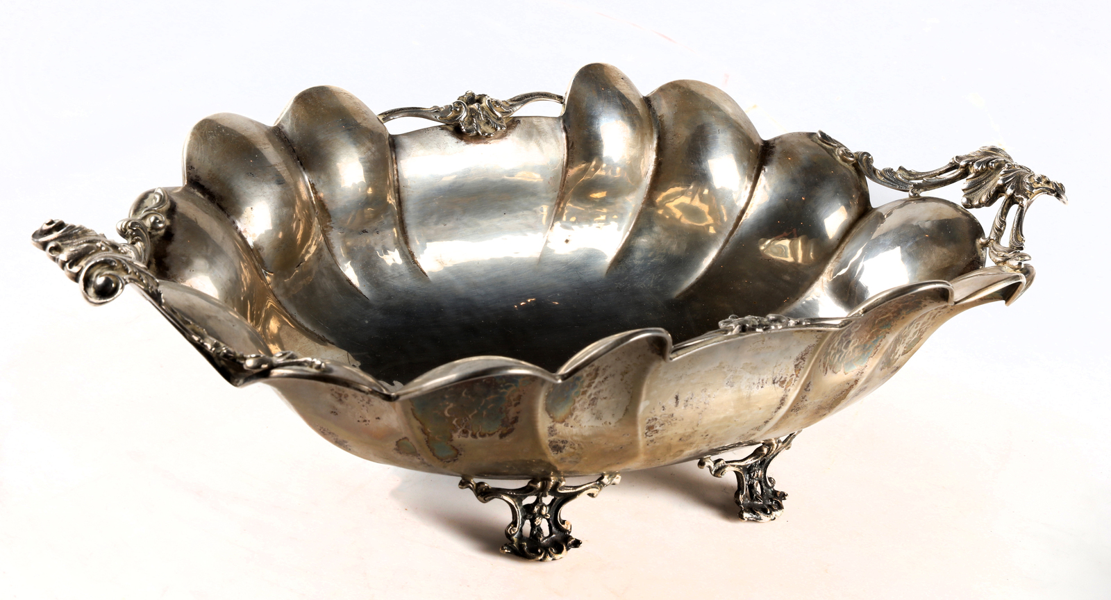 ARGENTIERE DEL XX SECOLO Cestino in argento. . Cm 40,00 x 10,00 x 19,00.