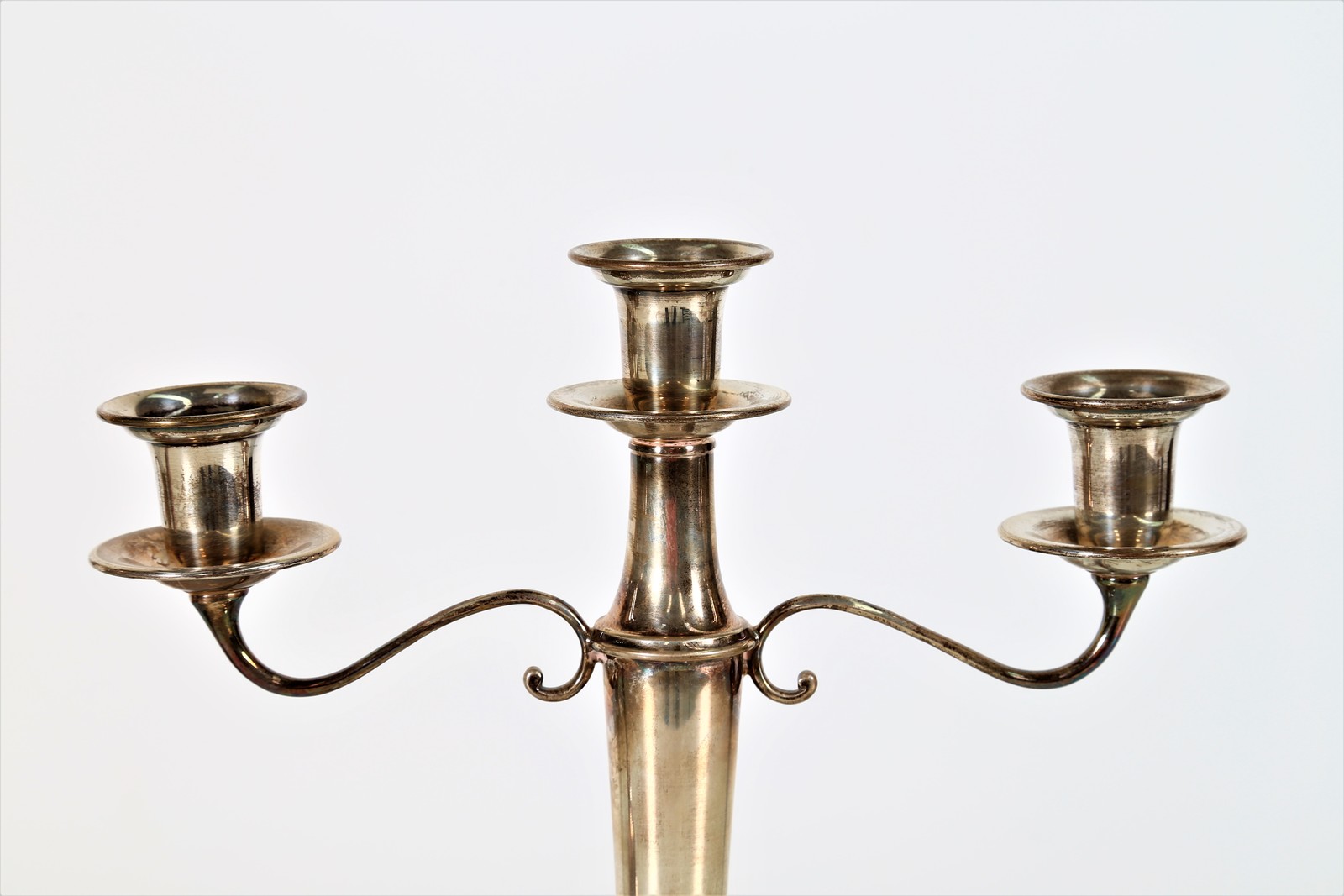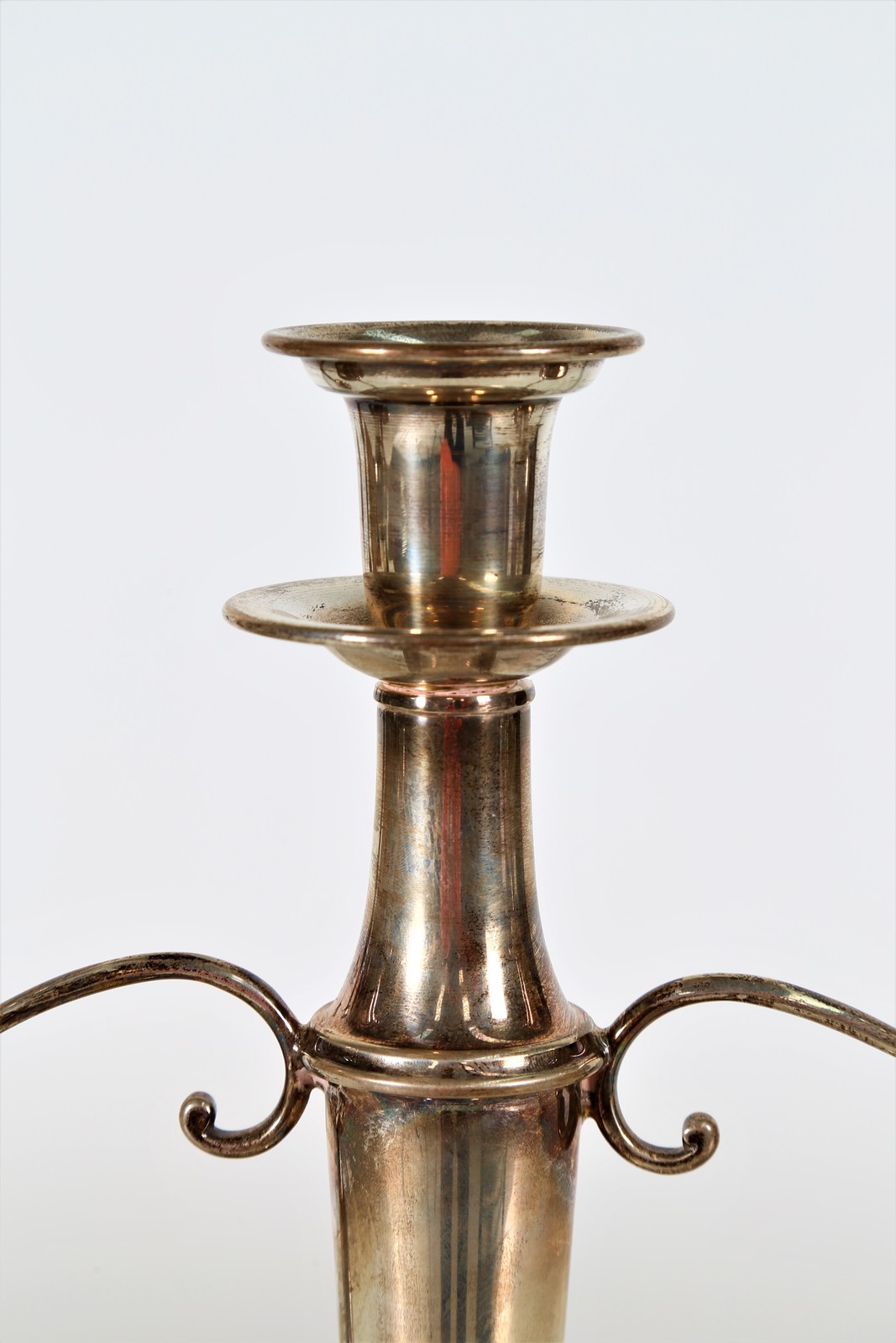 MANIFATTURA ITALIANA DEL XX SECOLO Coppia di candelabri in argento. . Cm 29,00. Punzoni alla base.