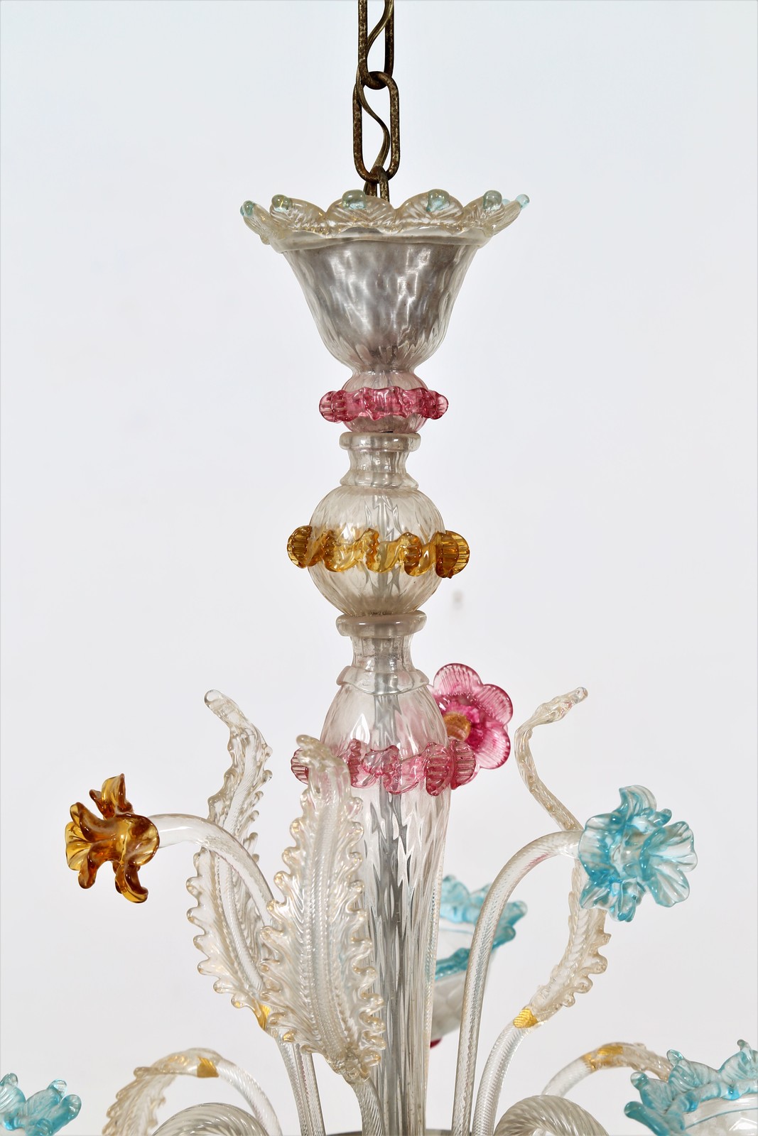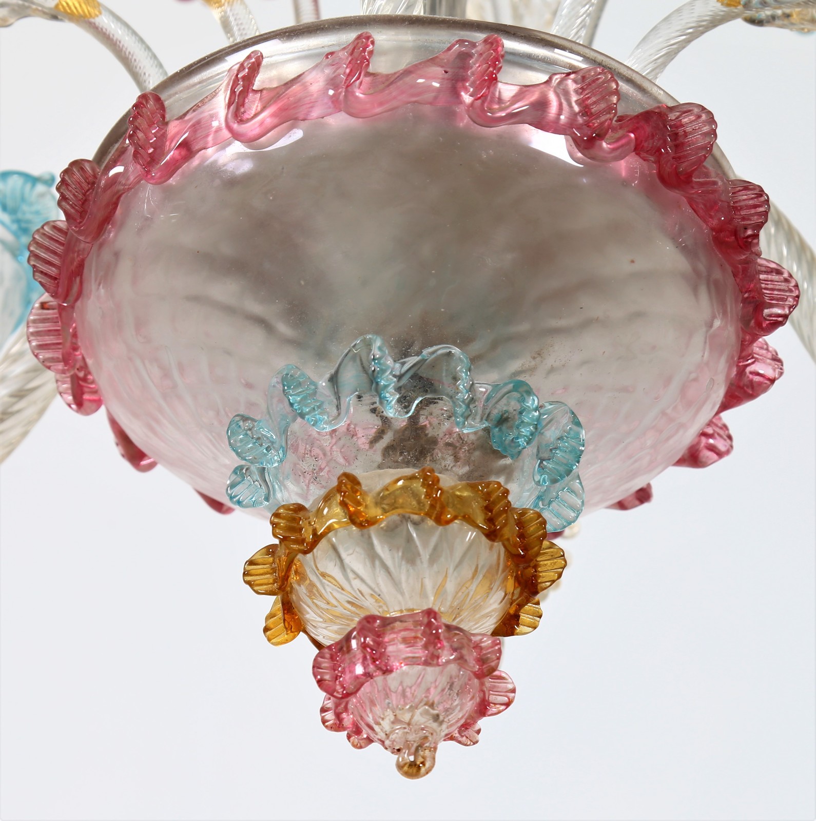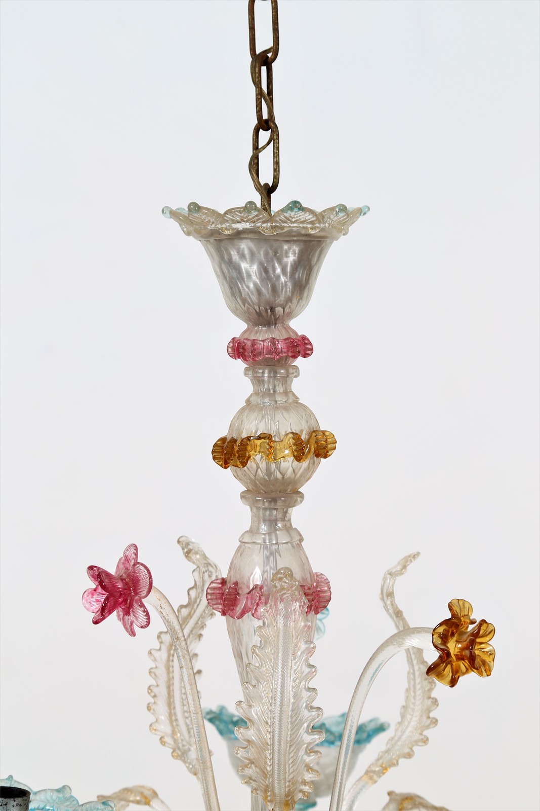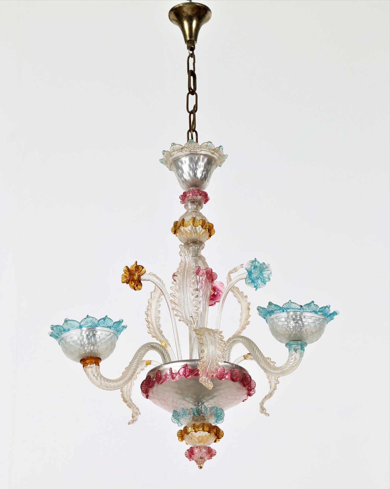 MANIFATTURA VENETA DELLA PRIMA META' DEL XX SECOLO Lampadario Cà rezzonico a due luci in vetro policromo. . Cm 50,00 x 85,00 x 50,00. Difetti.