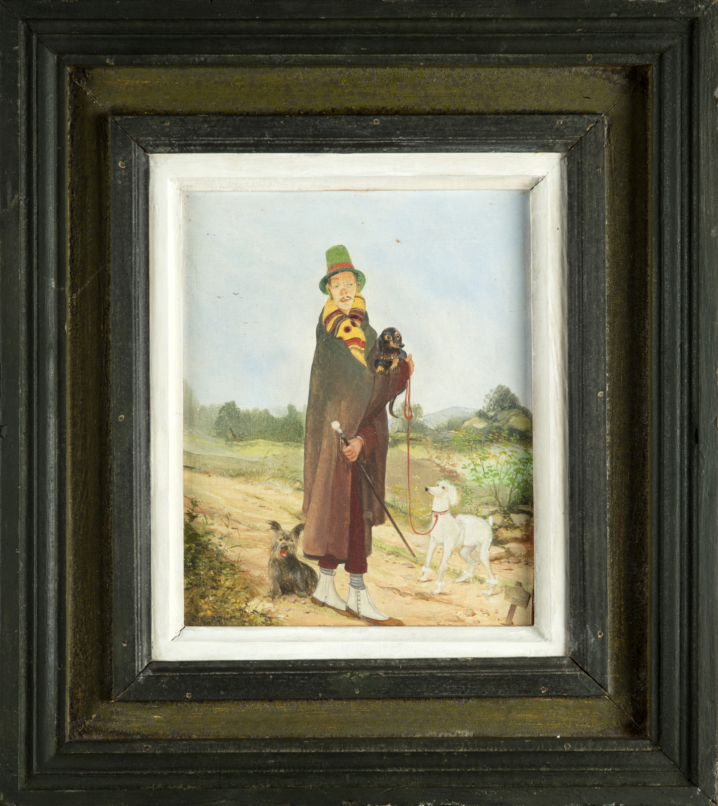 Lot 126 | BOGAILEI KLEOPHAS (1901 - 1989) Ritratto d'uomo con cani. Olio su tavola. Cm...