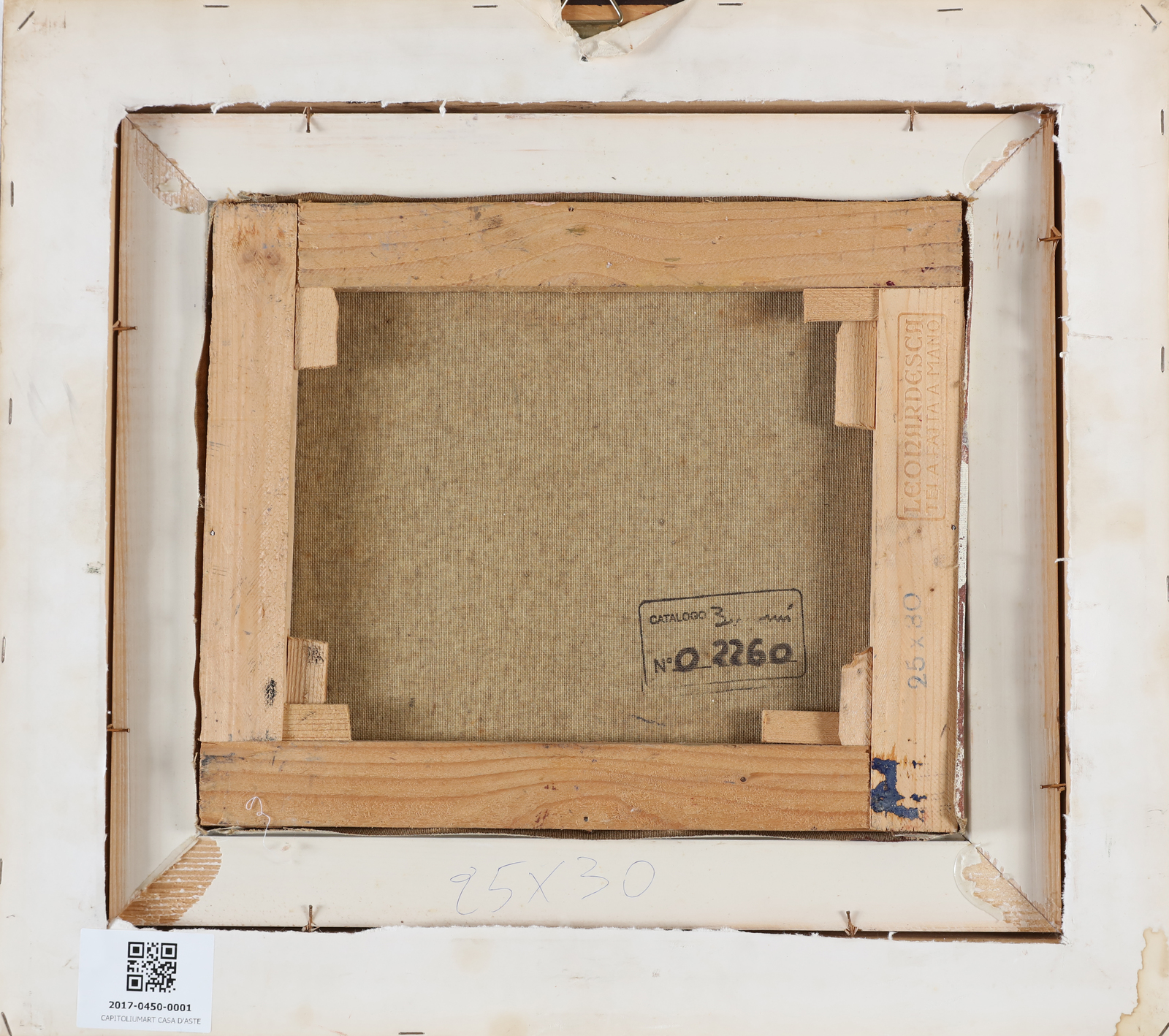 BERGOMI GIACOMO (1923 - 2003) Paesaggio. Olio su tela . Cm 30,00 x 25,00. Firma in basso a sinistra. Al retro timbro a cura dell'Archivio Bergomi, riportante il relativo numero d'inventario. Cornice presente