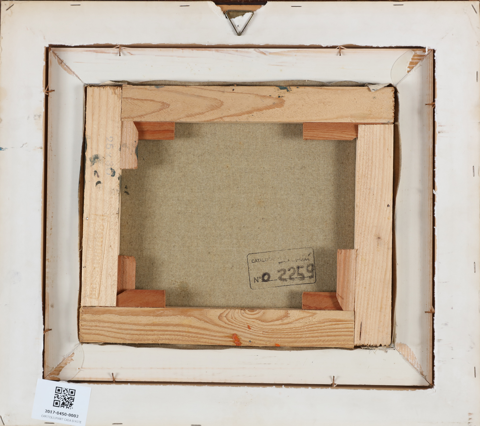 BERGOMI GIACOMO (1923 - 2003) Paesaggio con case. Olio su tela . Cm 30,00 x 25,00. Firma in basso a sinistra. Al retro timbro a cura dell'Archivio Bergomi, riportante il relativo numero d'inventario. . Cornice presente