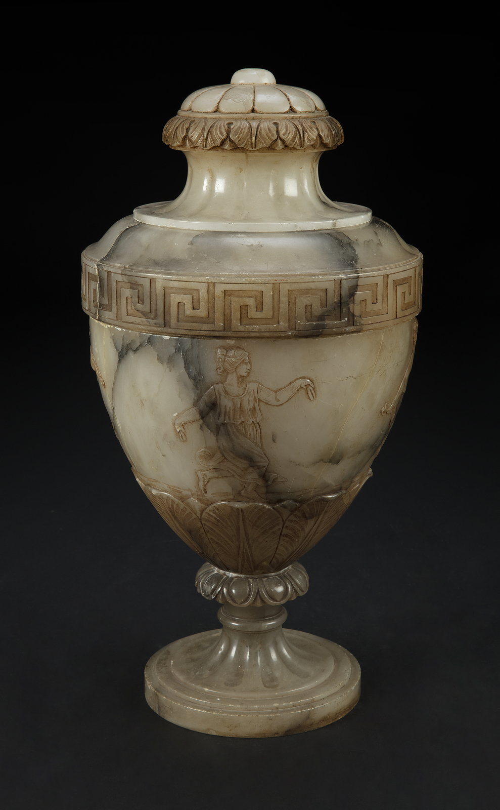 FRANCIA, XIX SECOLO Vaso in alabastro a forma di urna scolpito con figure di...