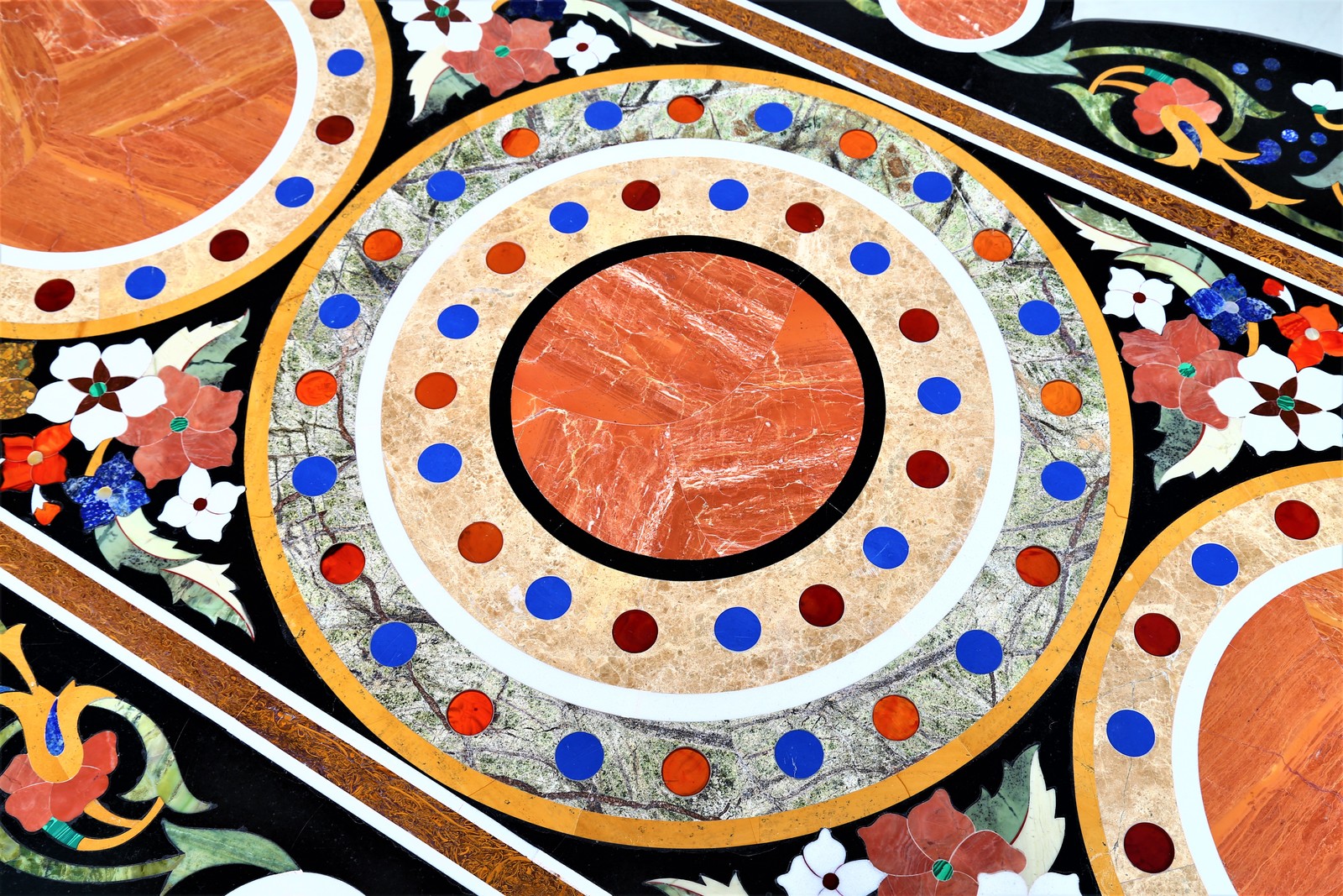 MANIFATTURA ITALIANA DEL XX SECOLO Piano sagomato in marmi diversi con...