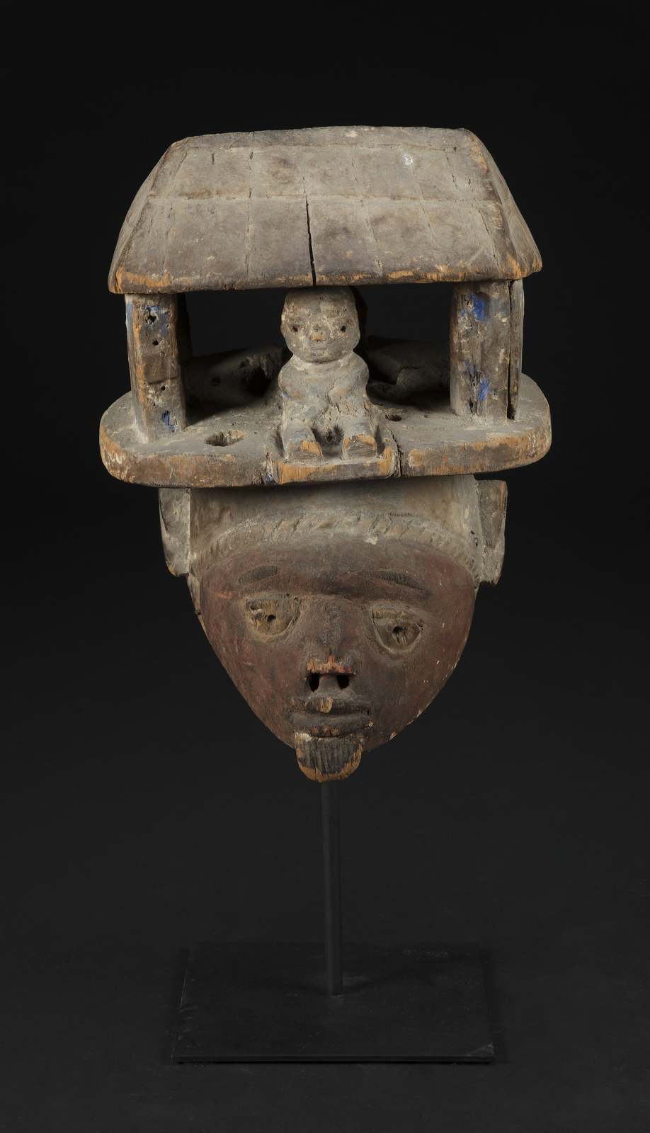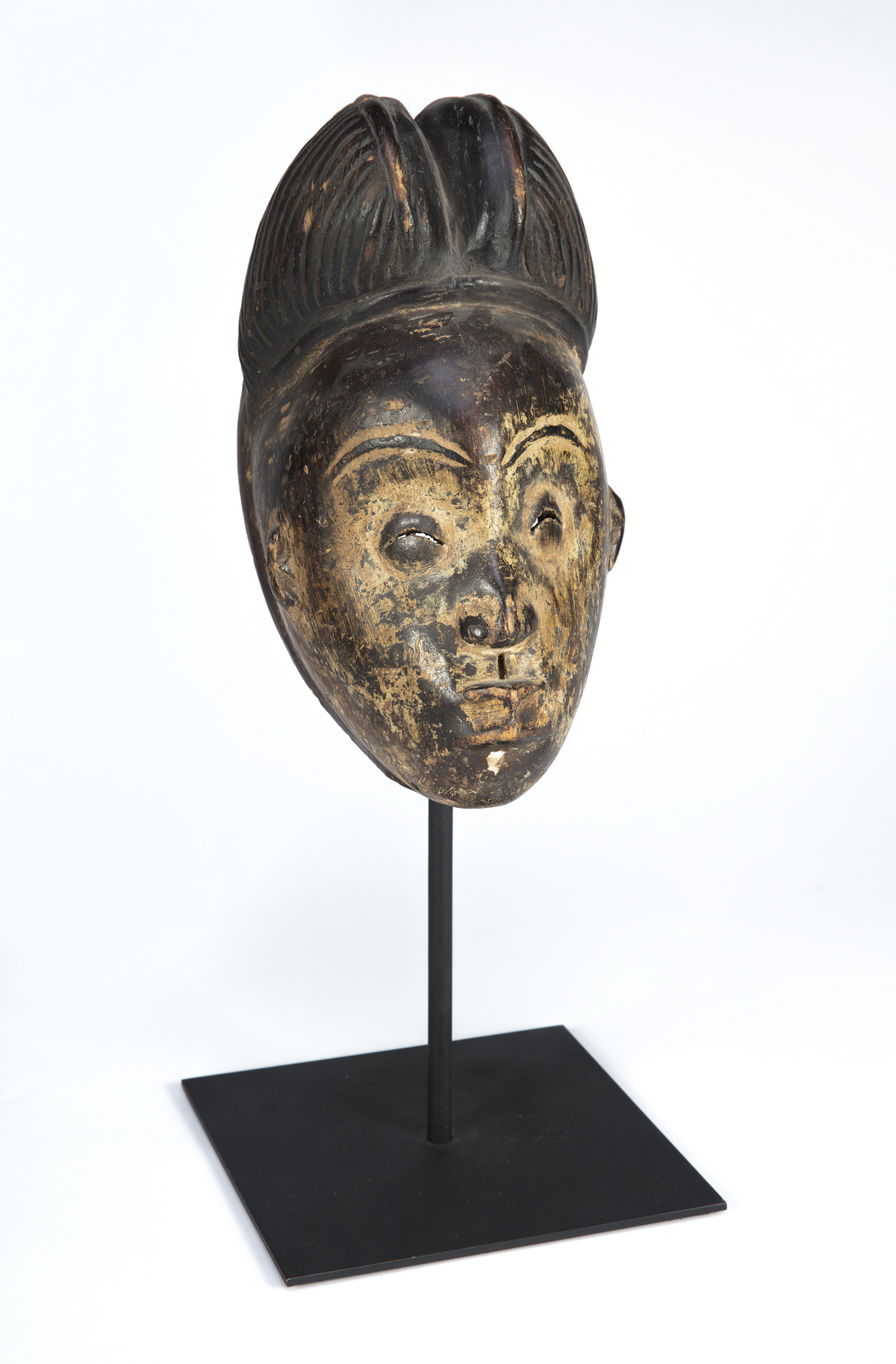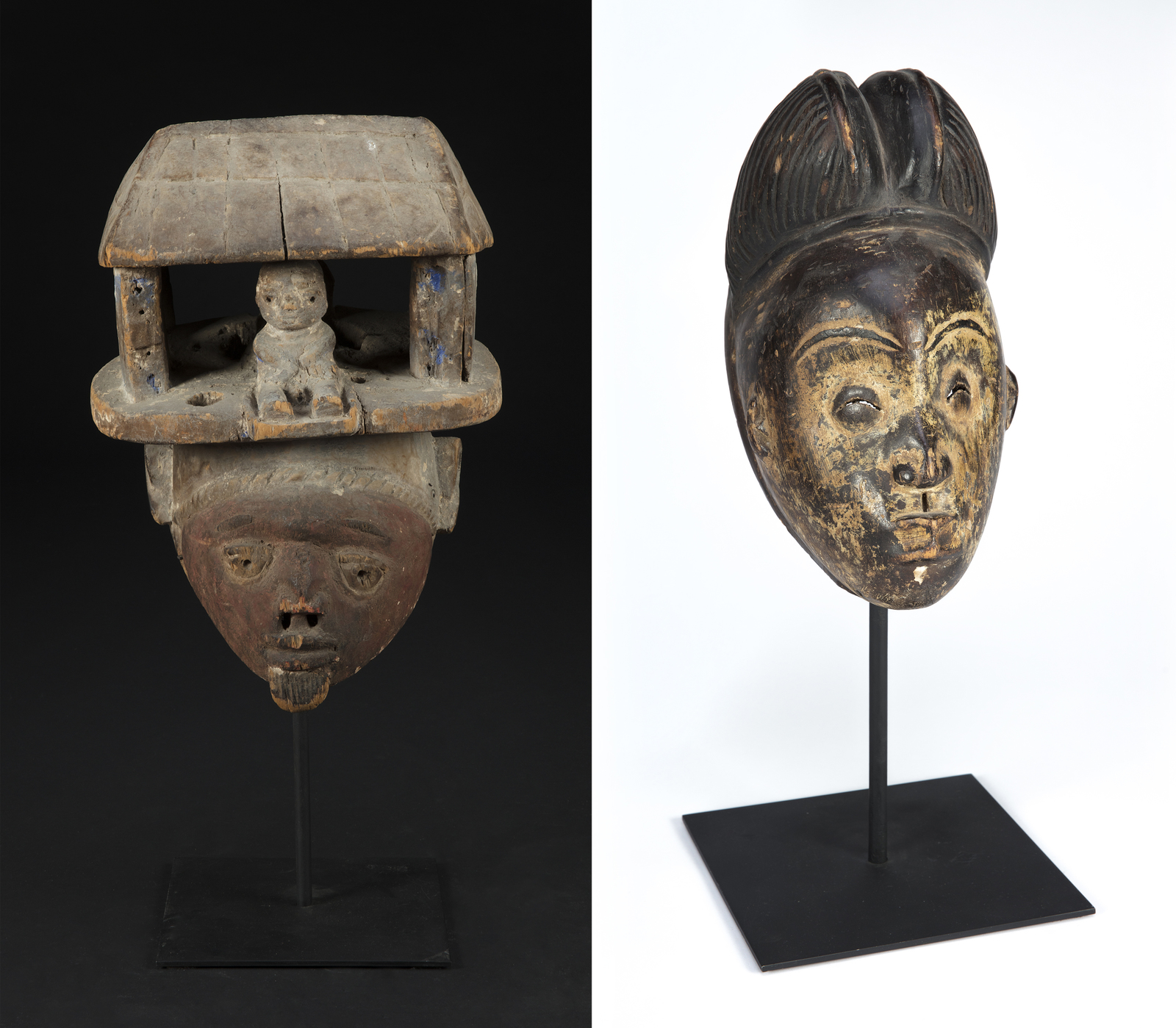 MANIFATTURA AFRICANA DEL XIX SECOLO Maschera Gelede società Yoruba Sud Nigeria/Benin; Maschera Punu, Sud Gabon. . Cm 15,00 x 28,50 x 13,00. 35,50 x 30,00 x 22,00 cm