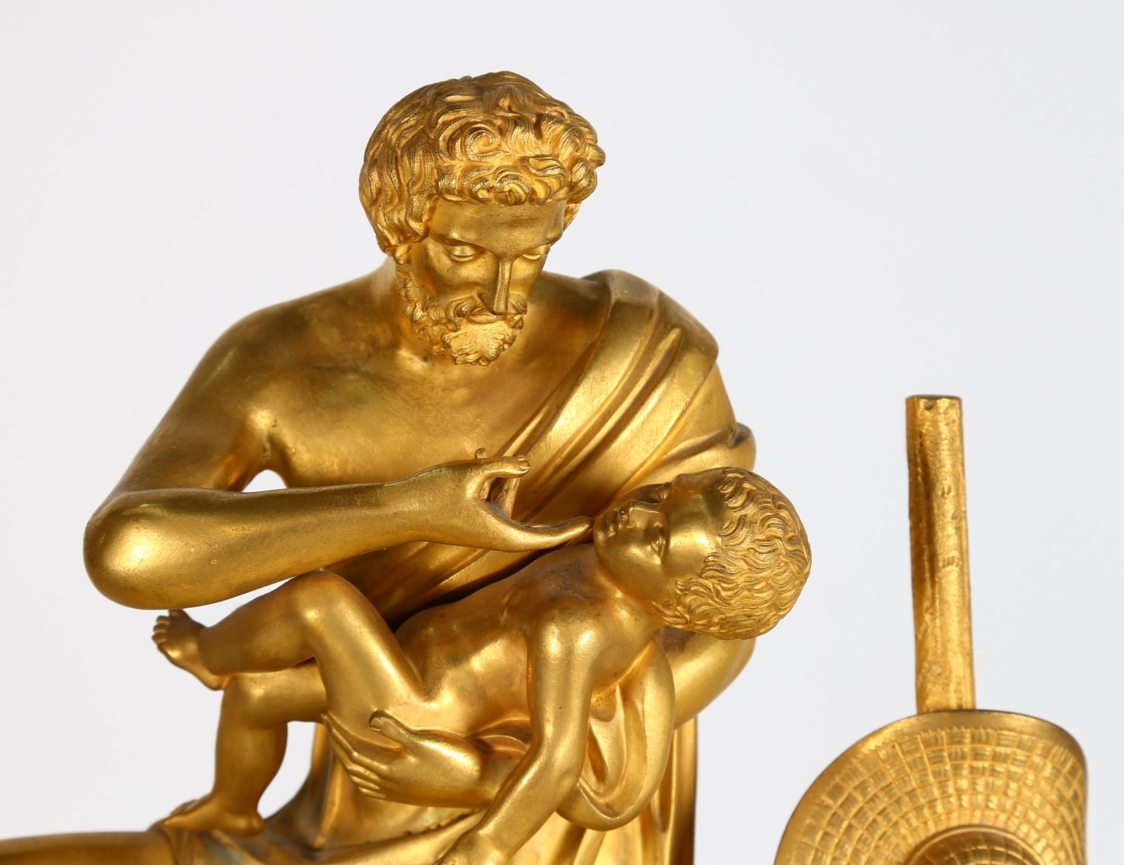 FRANCIA, XIX SECOLO Pendola da tavolo in bronzo dorato, base decorata a...