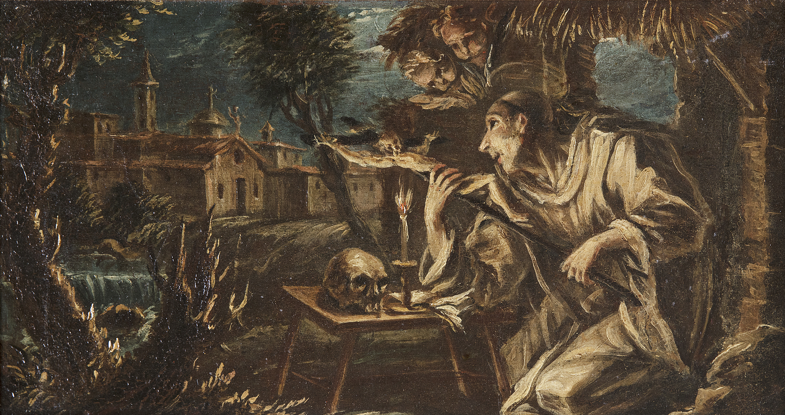 ARTISTA VENETO DEL XVII SECOLO Frate eremita. Olio su tela . Cm 42,50 x 22,50. . Cornice presente
