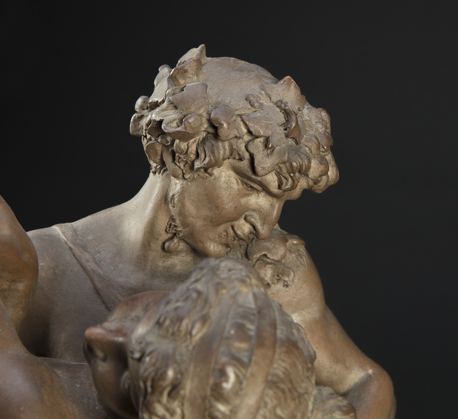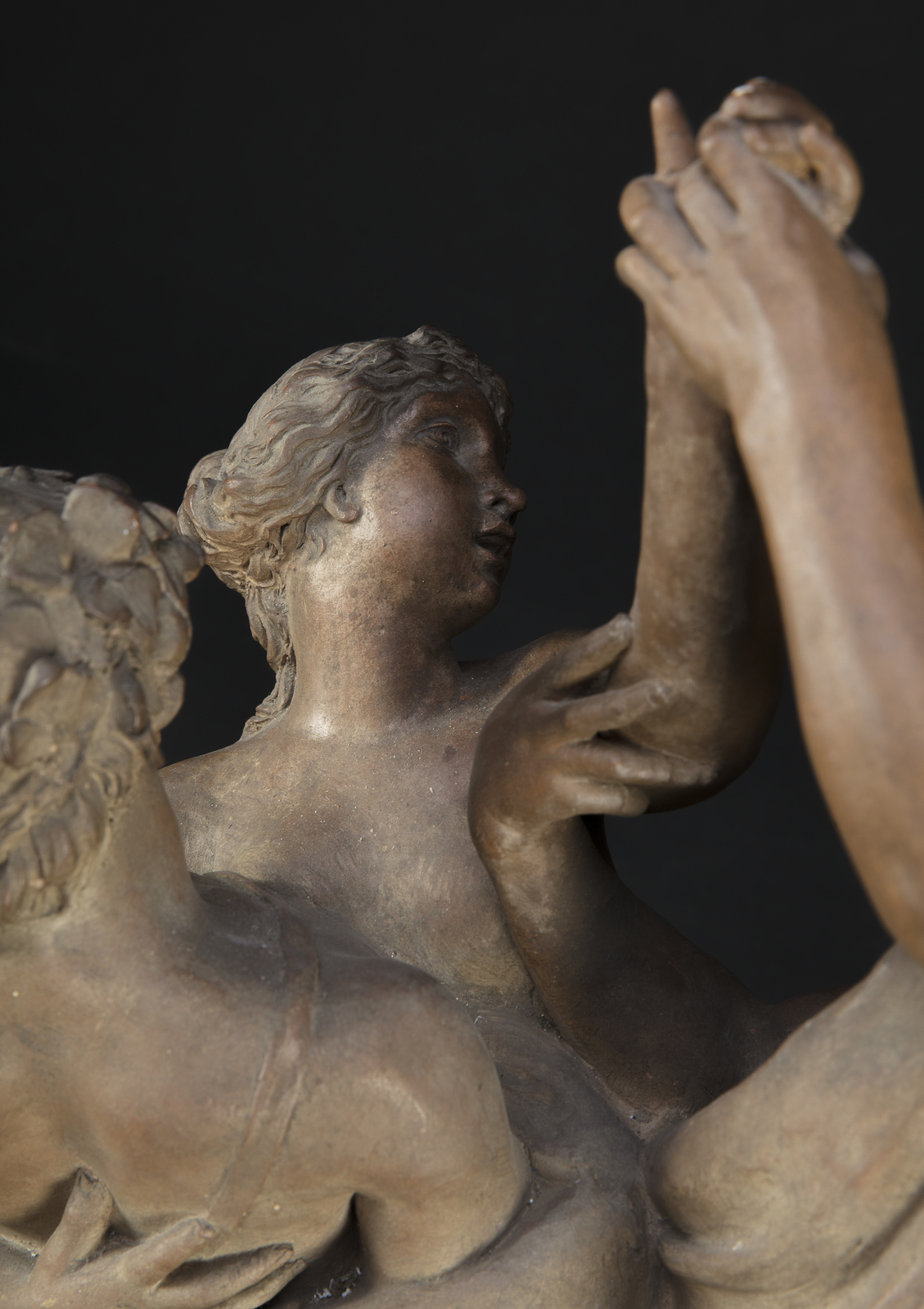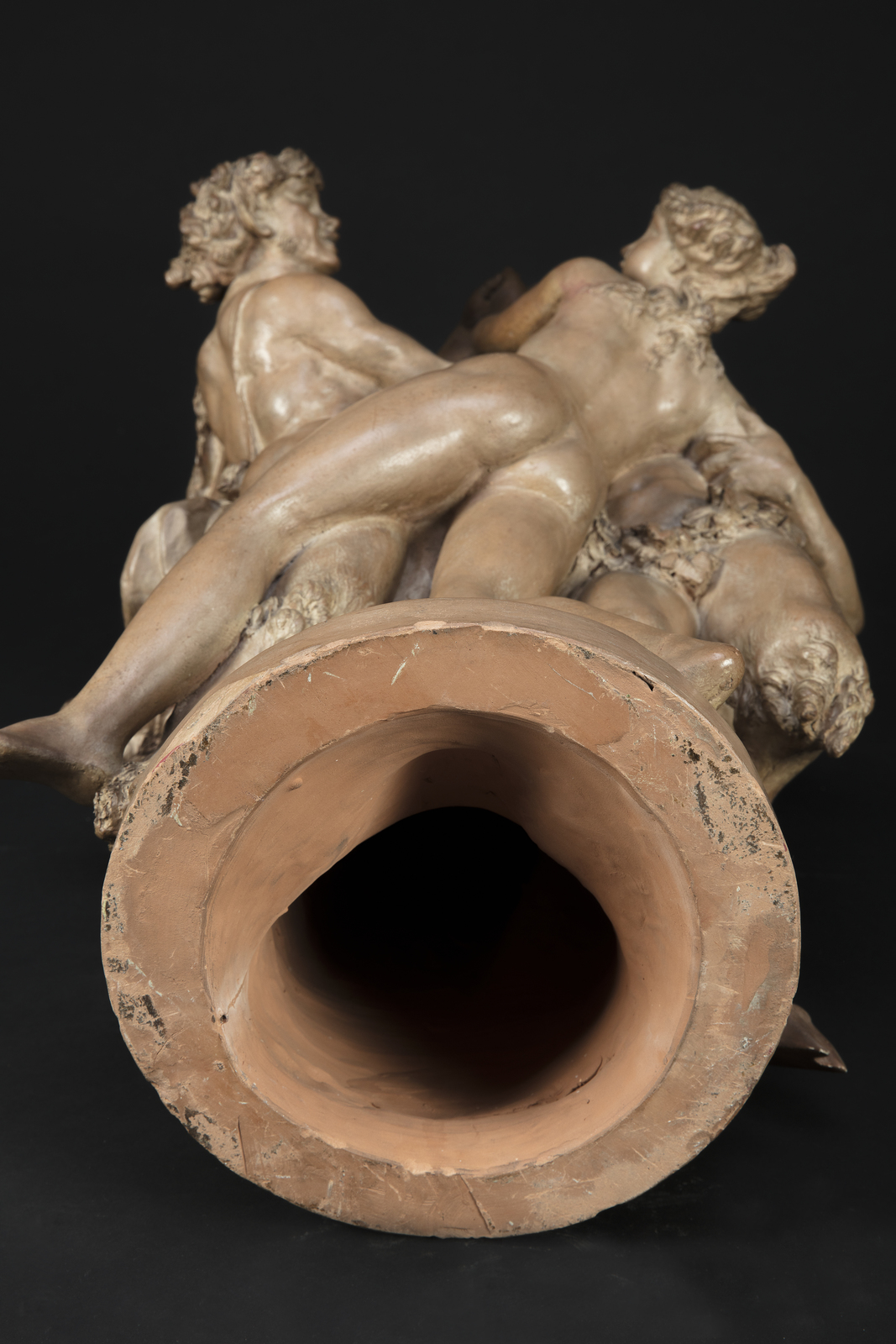 MANIFATTURA FRANCESE DEL XIX SECOLO Ninfe con satiro. scultura in terracotta....