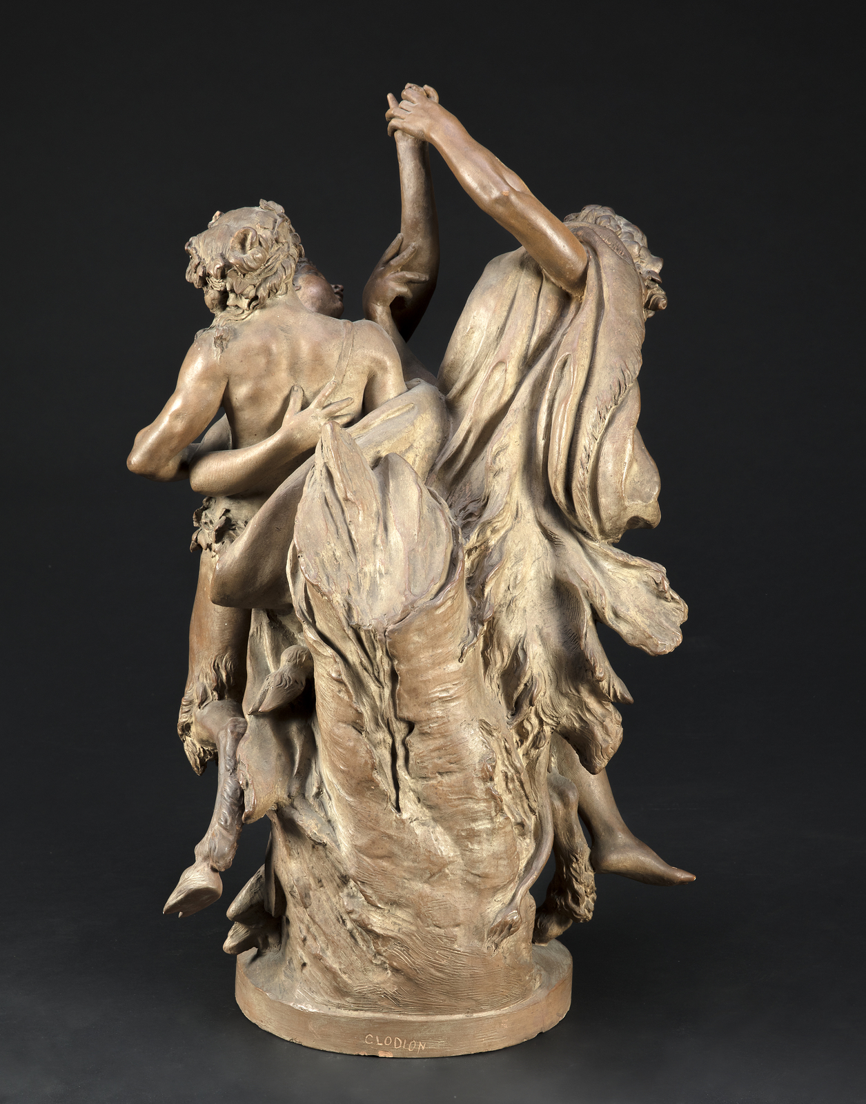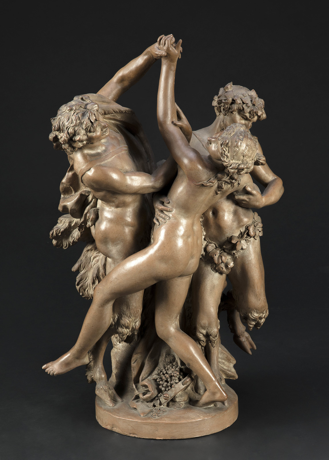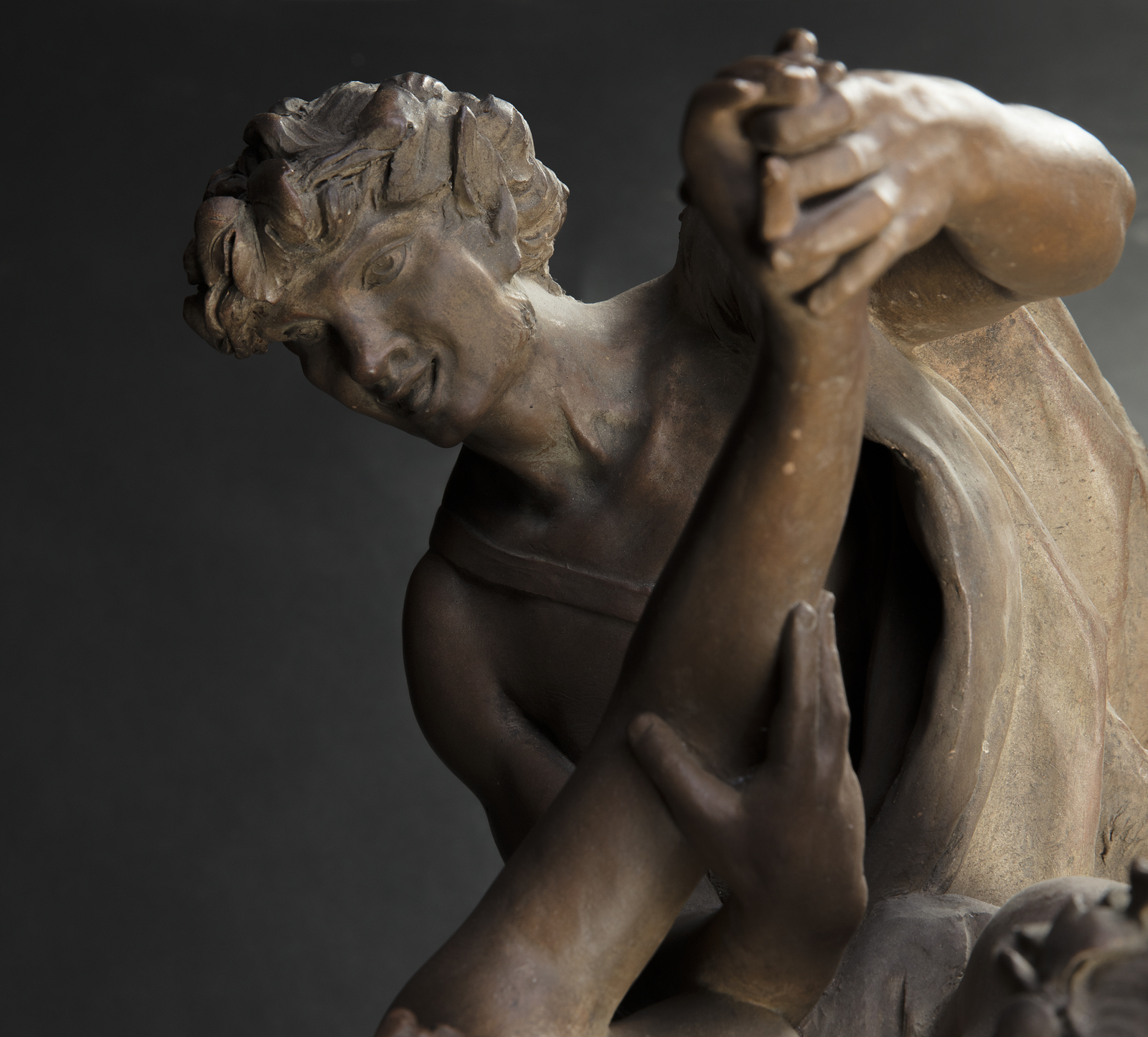 MANIFATTURA FRANCESE DEL XIX SECOLO Ninfe con satiro. scultura in terracotta....