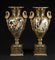 FRANCIA, XIX SECOLO Coppia di vasi in porcellana dorata, riserve decorate con "il bagno di Venere" e "Il giudizio di Paride". Prese a forma di cigno. . . Cm 68,50.
