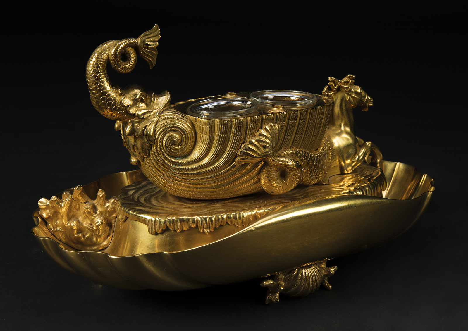 FRANCIA, XIX SECOLO Calamaio in bronzo dorato decorato con figura fantastica....