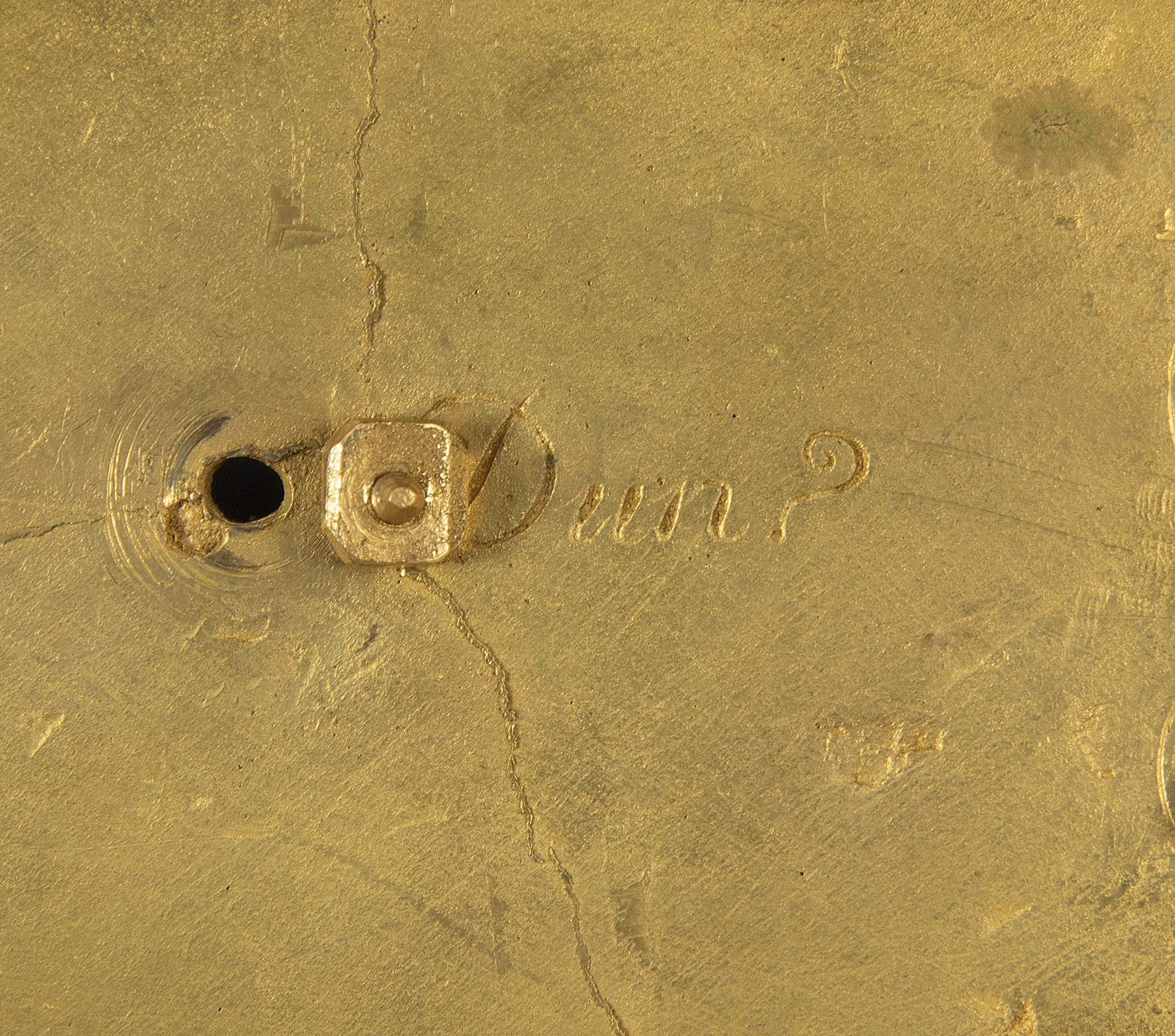 FRANCIA, XIX SECOLO Calamaio in bronzo dorato decorato con figura fantastica. . . Cm 18,00 x 29,00 x 18,00. Sul fondo riporta la dicitura "Dun ?"