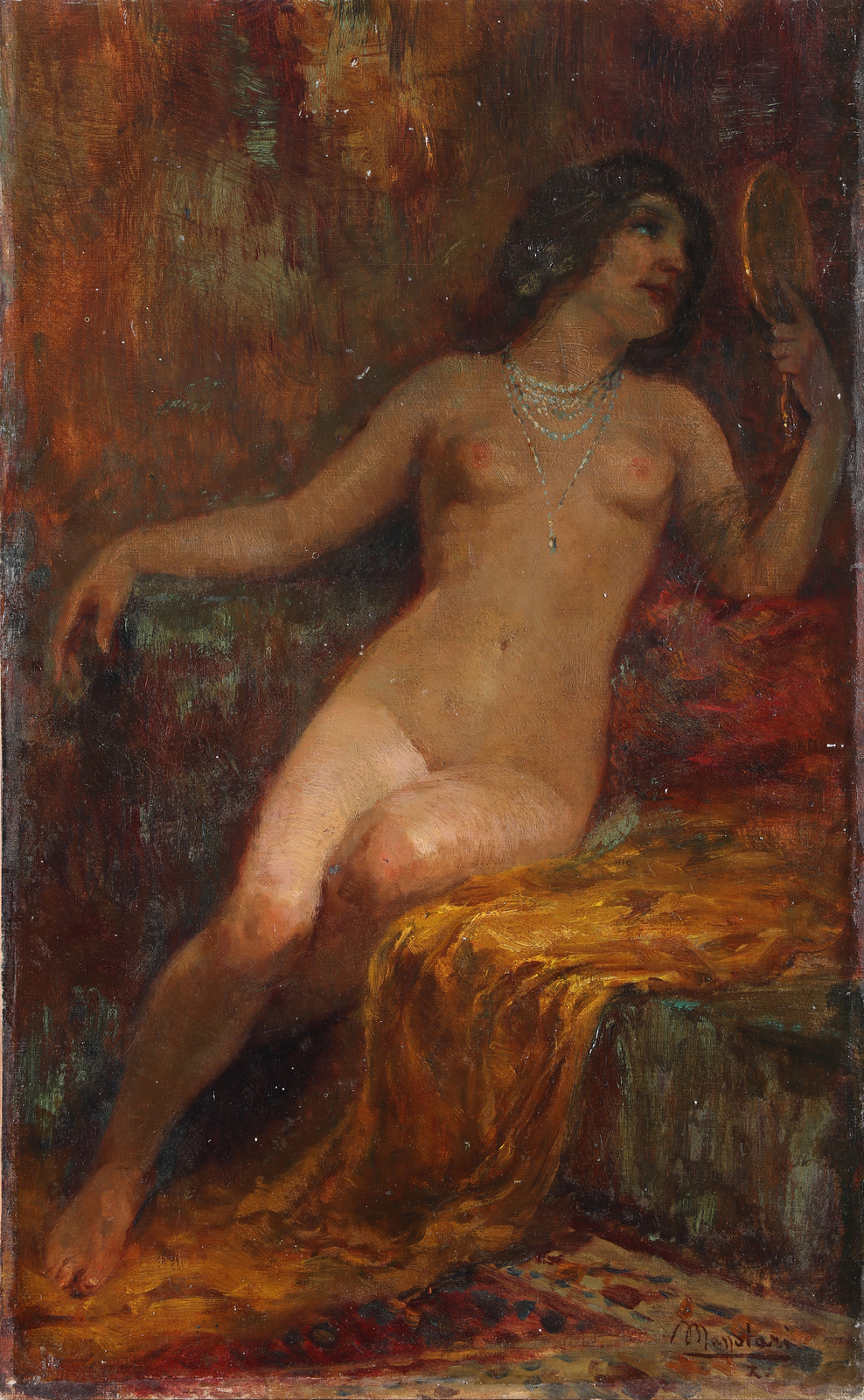 Lot 334 | ARTISTA DEL XIX SECOLO Nudo di donna di profilo. Olio su cartone pressato. Cm...
