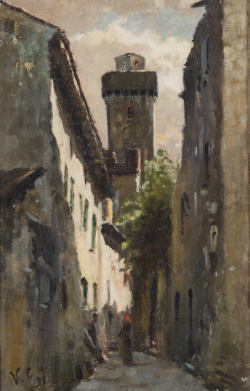 CABIANCA VINCENZO (1827 - 1902) Vicolo cittadino (Borgo antico). 1898. Olio su tela . Cm 18,00 x 24,00. Firmato e datato in basso a sinistra. Cornice presente