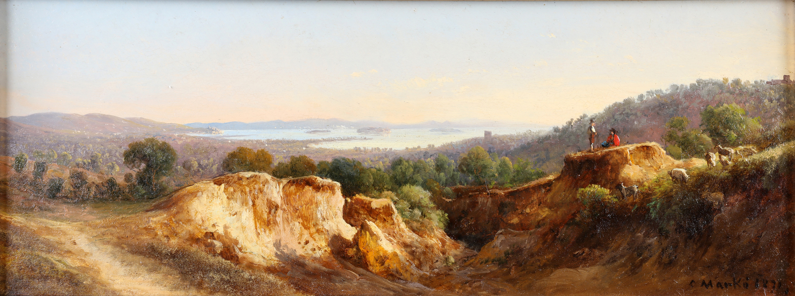 MARKO CARLO I (1791 - 1860) Veduta costiera. 1831. Olio su cartone. Cm 35,00 x 14,00. Firma e anno in basso a destra. Cornice presente