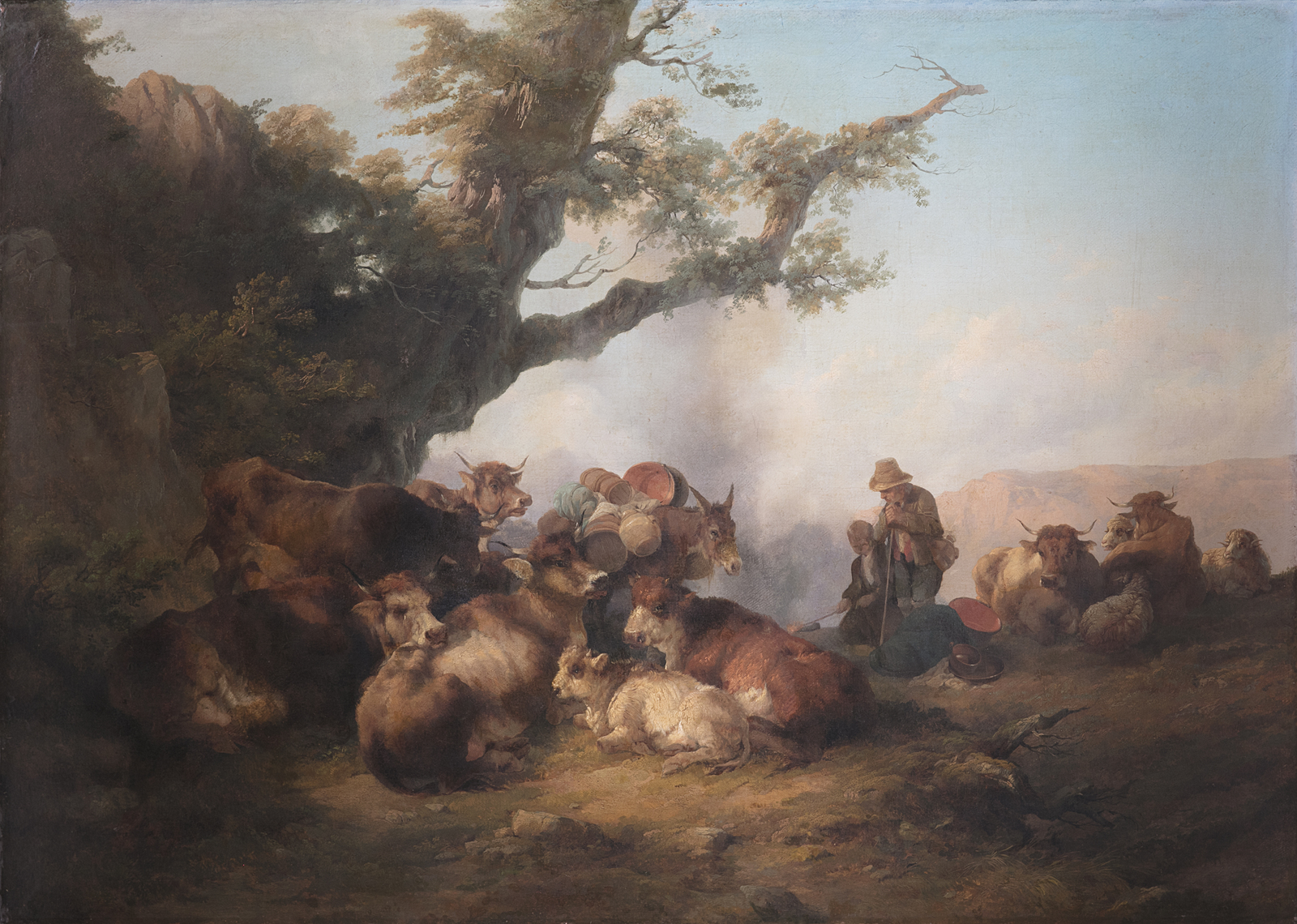 PITTORE NAPOLETANO DEL XIX SECOLO Gregge e pastore. Olio su tela . Cm 119,00 x 87,50. . Cornice presente