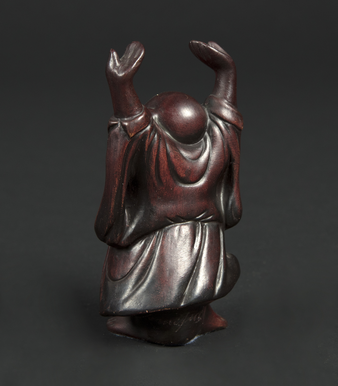 MANIFATTURA DI CACCIAPUOTI (XX SECOLO) Buddha sorridente con le mani alzate. Ceramica. Cm 10,50. Firmato alla base.