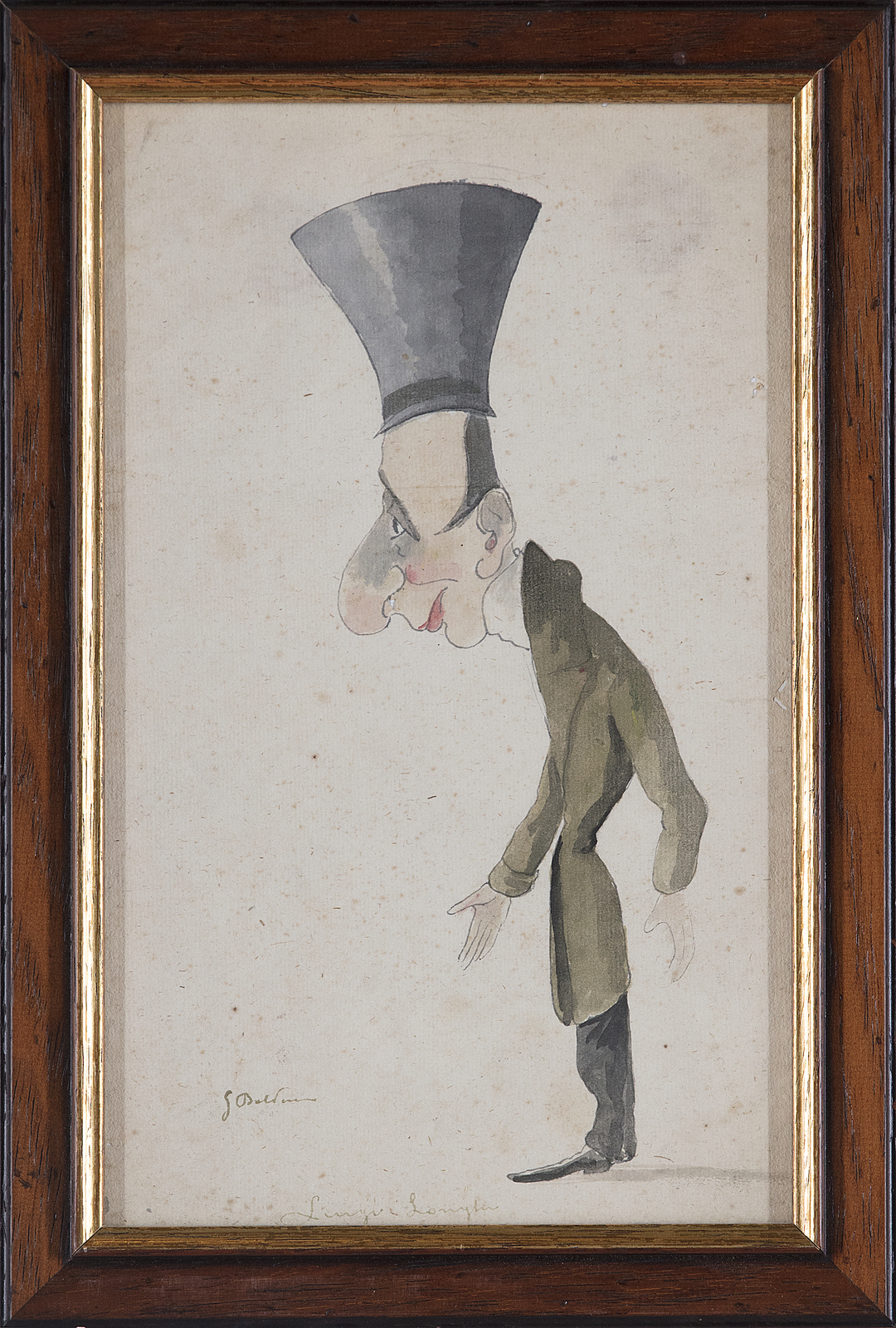 BOLDINI GIOVANNI (1842 - 1931) Signor Longhi. Acquarello su carta. Cm 18,00 x 30,00. Firmato in basso a sinistra. Titolato in basso: Signor Longhi. Cornice presente