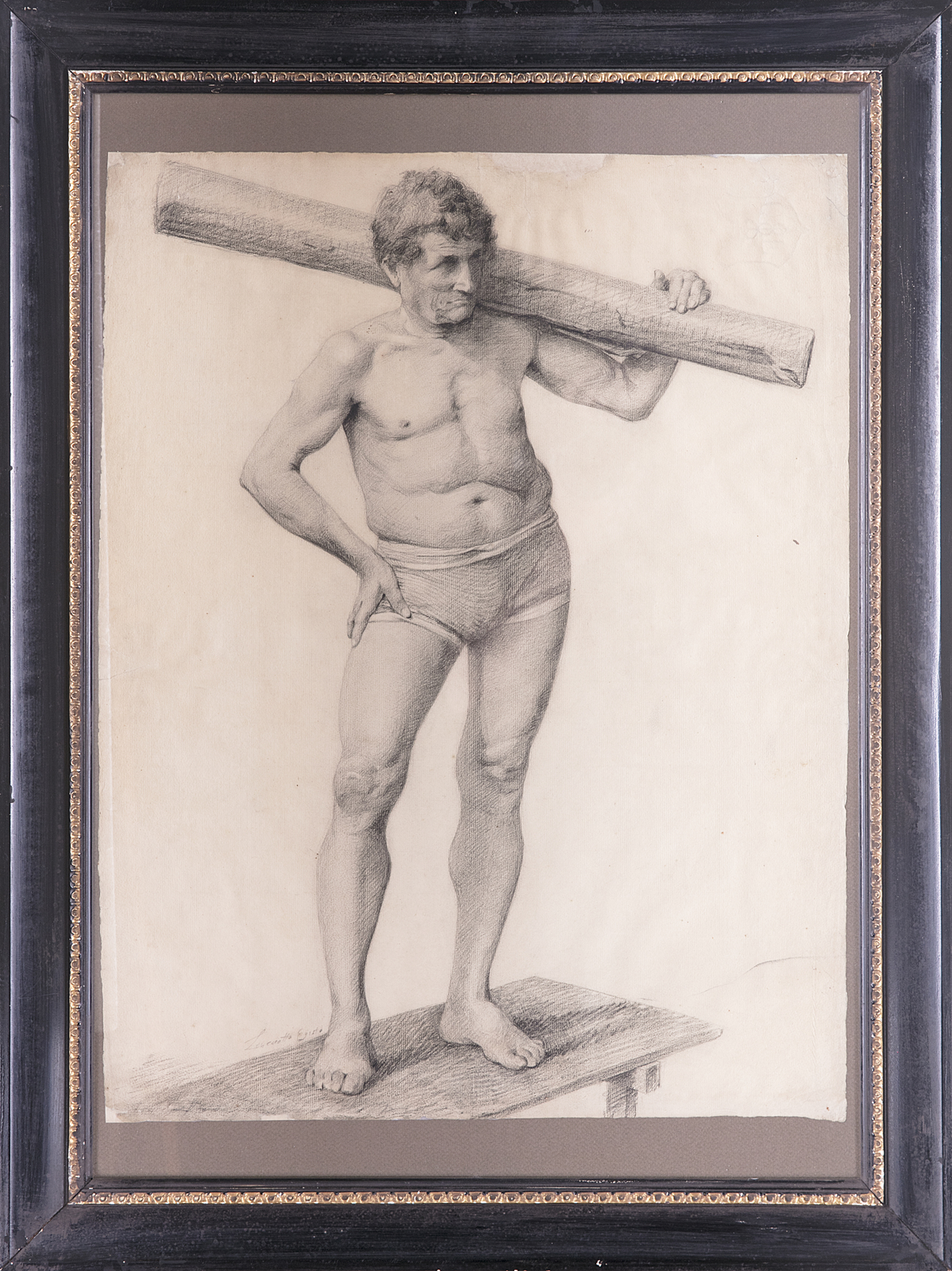 LANCEROTTO EGISTO (1847 - 1916) Figura d'uomo con bastone. . Matita su carta. Cm 46,50 x 61,00. Firmato a matita in basso a sinistra.