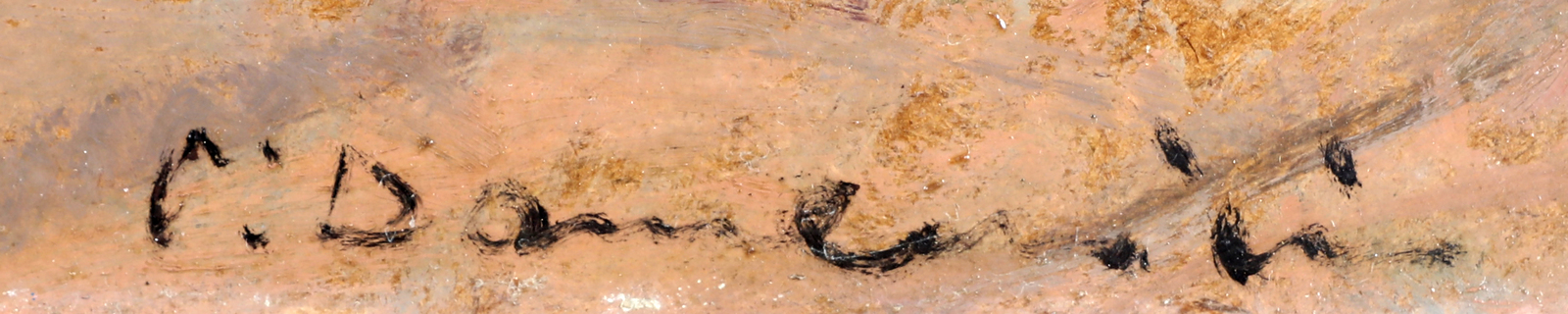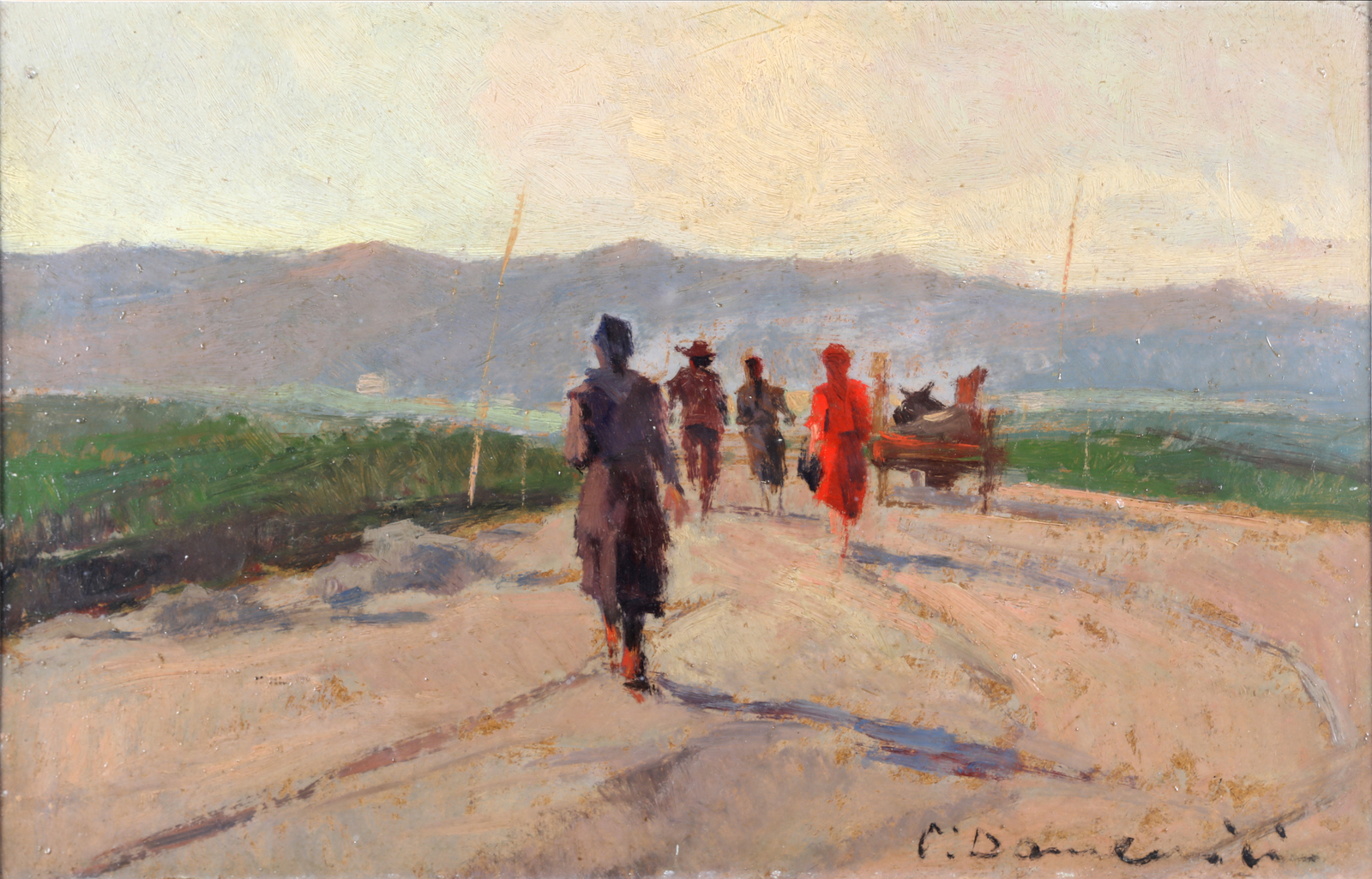 Lot 418 | DOMENICI CARLO (1898 - 1981) Paesaggio con personaggi. . Olio su faesite. Cm...