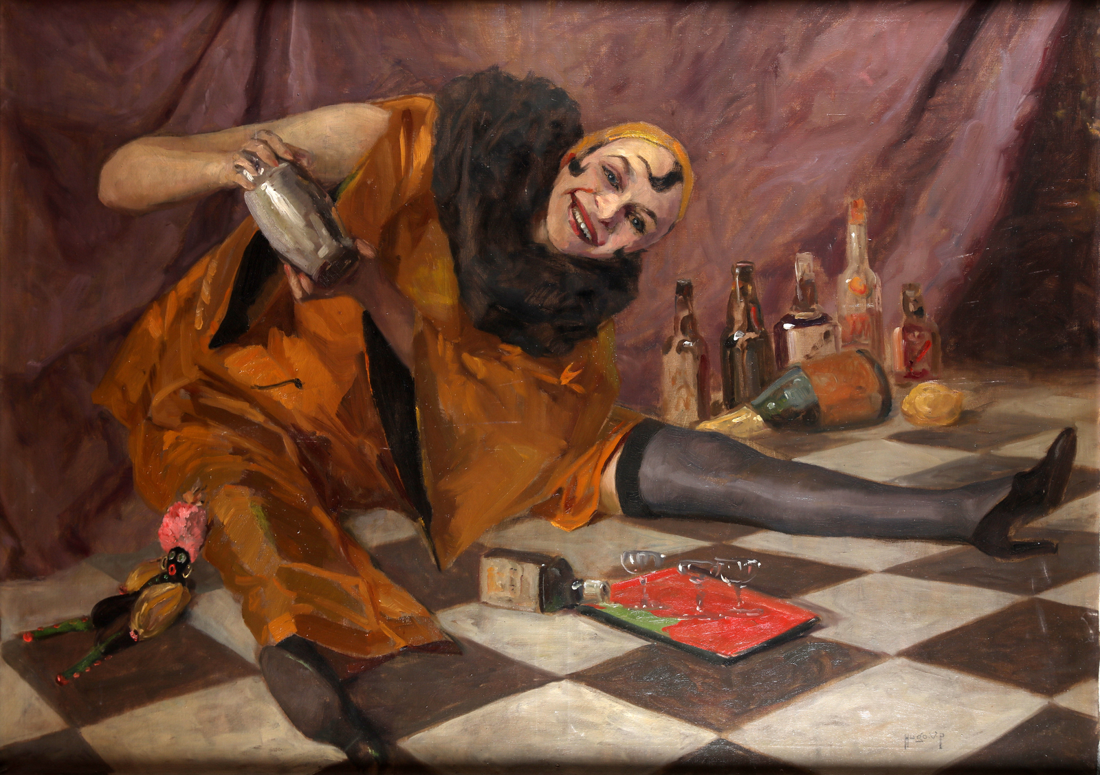 PEDERSEN HUGO WILFRED (1870 - 1959) Too many cocktails. Olio su tela . Cm 139,00 x 97,00. Firmato in basso a destra.
