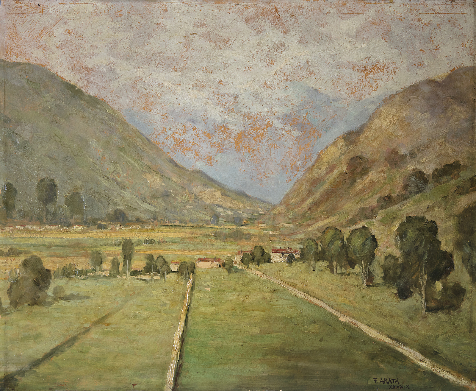 ARATA FRANCESCO (1890 - 1956) Paesaggio. Olio su tavola. Cm 60,00 x 50,00. Firmato in basso a destra. Cornice presente