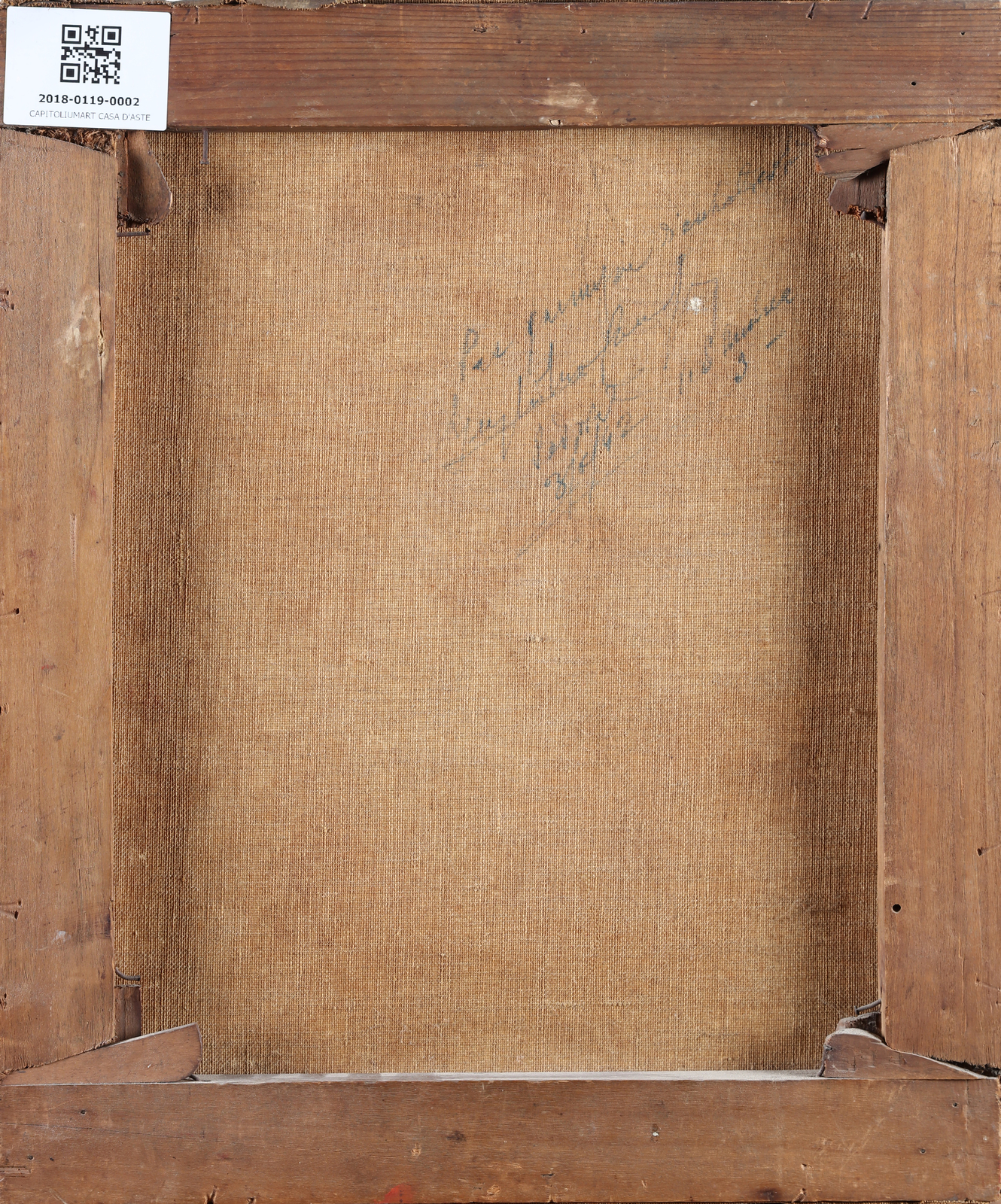 IROLLI VINCENZO (1860 - 1942) La lettura. Olio su tela . Cm 33,50 x 40,00. Firma in basso a sinistra. Al retro scritta illeggibile. Cornice presente