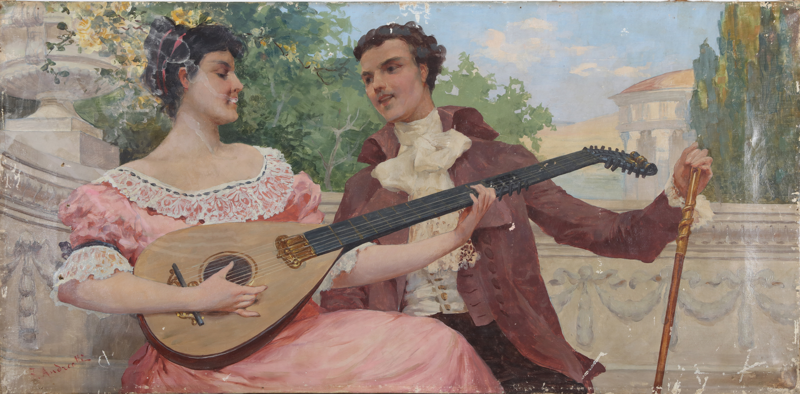 Lot 446 | ANDREOTTI FEDERICO (1847 - 1930) Serenata. Olio su tela . Cm 87,50 x 42,50....