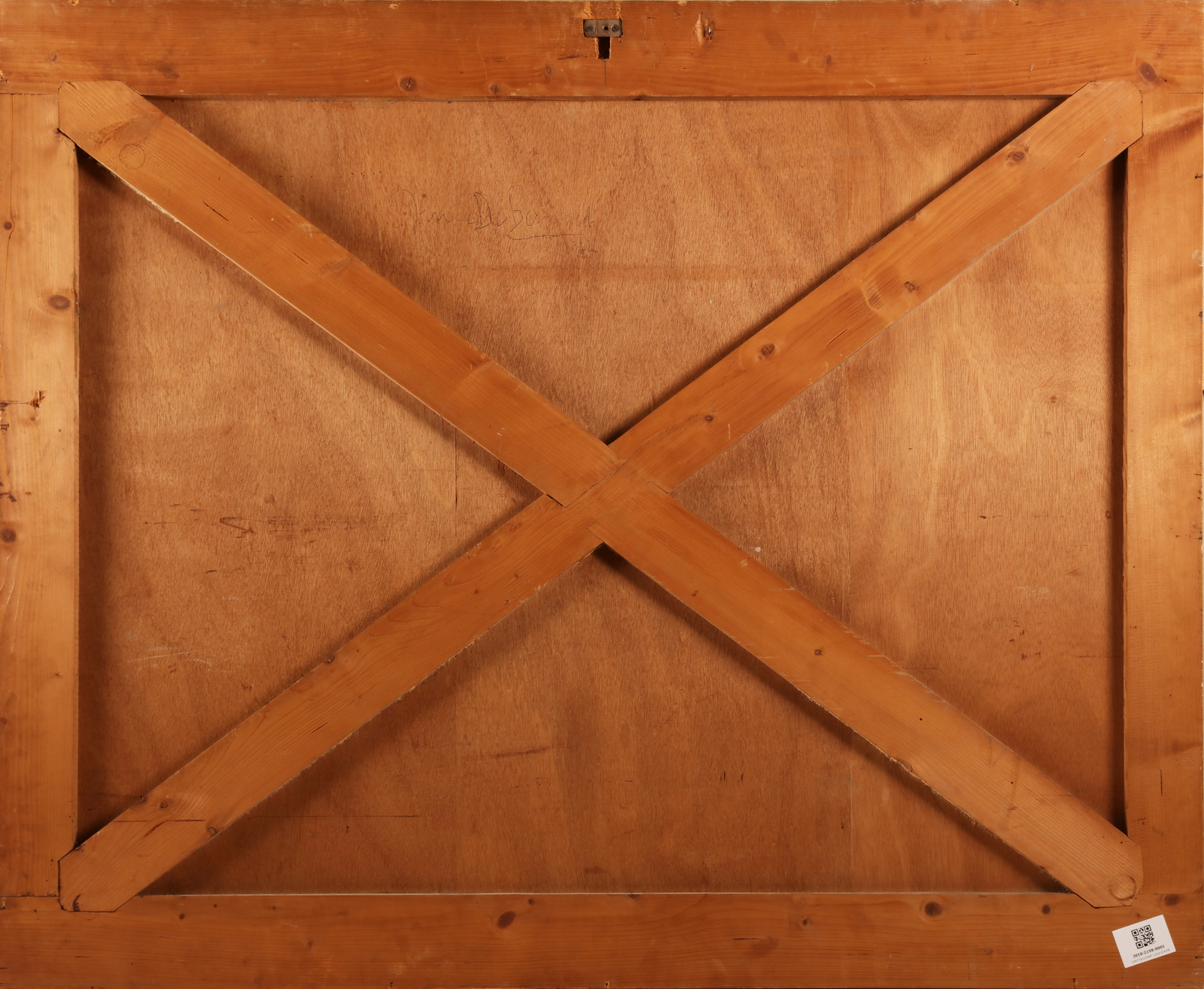 DE BERNARDI DOMENICO (1892 - 1963) Marina con barche. 1943. Tecnica mista su tavola. Cm 120,00 x 100,00. Firma in basso a sinistra. Al retro firma e anno. Cornice presente