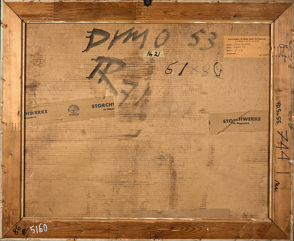 HANS RICHTER 1888 - 1976 Dymo 53, 1971 Collage di cartoni, cm. 62 x 78 Siglato e datato in basso a destra Etichetta e timbro Galleria d’Arte del Naviglio, Milano sul retro Prov. Collezione Privata