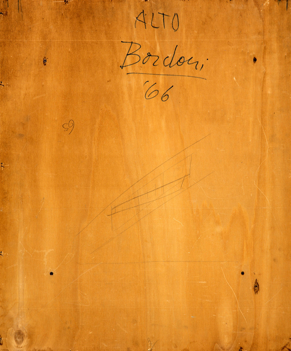 ENRICO BORDONI 1904 - 1969 Senza titolo, 1966 Tecnica mista su tela, cm. 50 x 40 Firmato e datato sul retro Prov. Collezione Privata