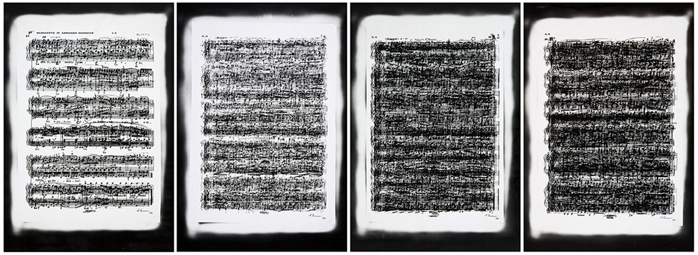 ARMANDO MARROCCO 1939 Sconcerto di Armando Marrocco, 1970 Quadrittico, stampa applicata su lastra di alluminio, cm. 59 x 41 cad. Firmato e datato in basso a destra Prov. Collezione Privata