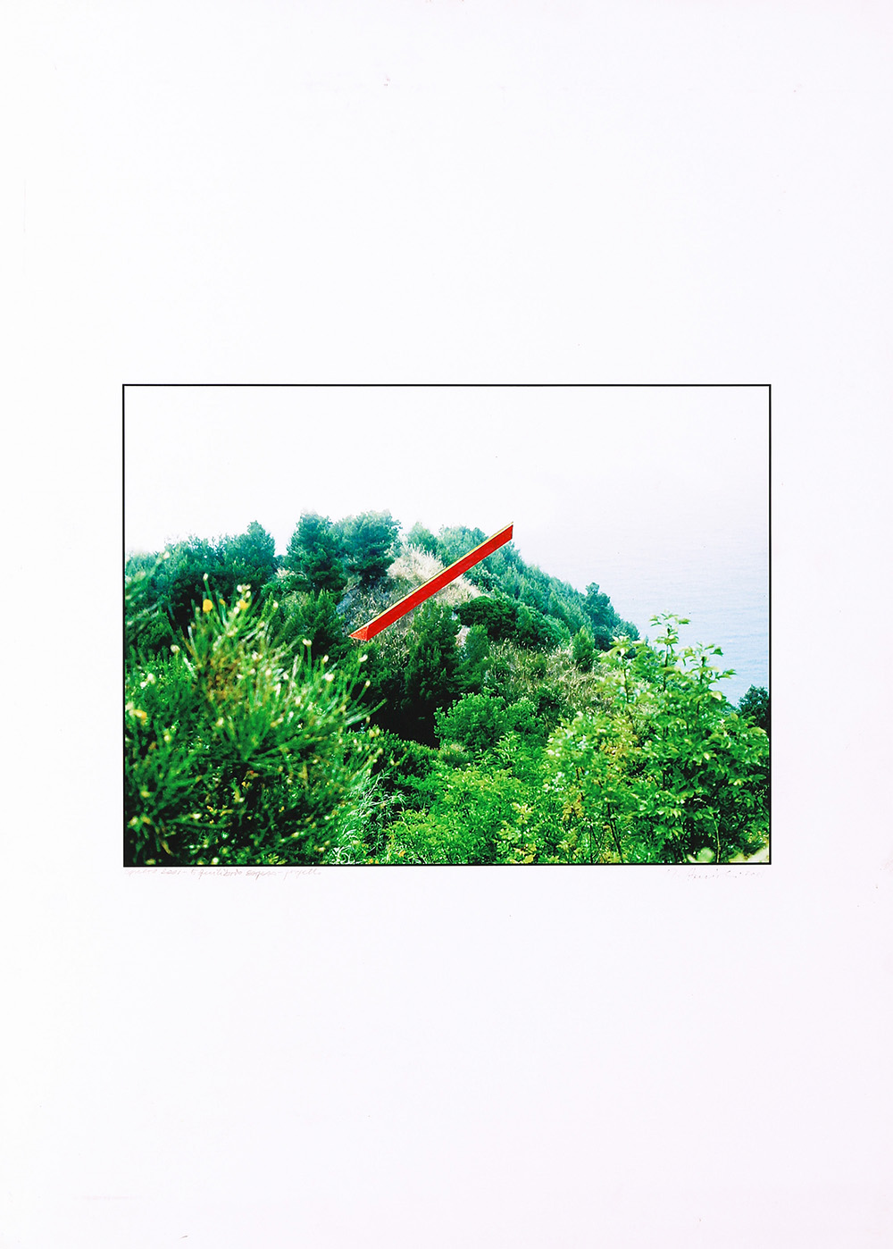 MAURO STACCIOLI 1937 - 2017 Equilibrio sospeso - progetto, 2001 Stampa fotografica su forex e intervento dell’artista, cm. 70 x 50 (interno cm. 35 x 26) Firmato e datato in basso Opera in fase di archiviazione presso l’Archivio Mauro Staccioli Prov. Collezione Privata