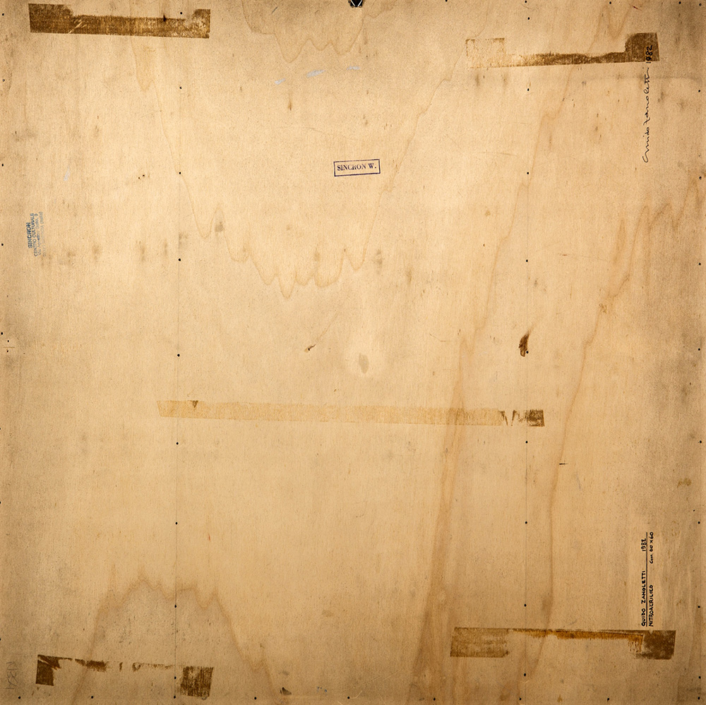 GUIDO ZANOLETTI 1933 - 2014 Senza titolo, 1982 Nitroacrilico su tavola, cm. 62 x 62 x 2 Firmato e datato sul retro Timbro Centro Culturale Sincron, Brescia sul retro Timbro Sincron W., Brescia sul retro Prov. Collezione Privata