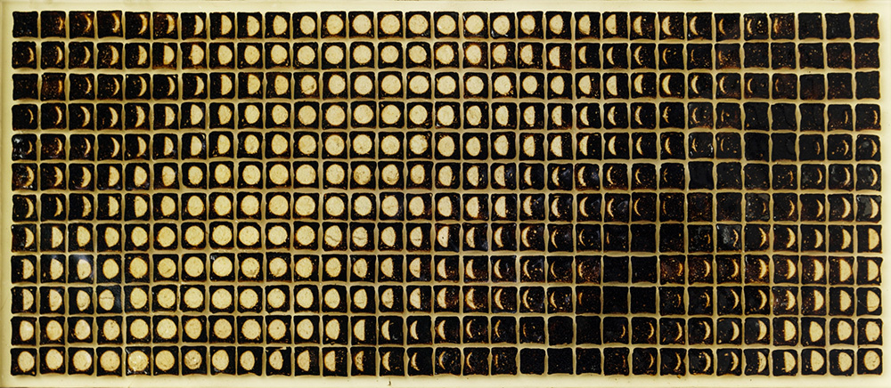 DAVID REIMONDO 1972 Fasi lunari, 2008 Fette di pane tostato in resina, cm. 70 x 158,5 Firmato e datato sul retro Autentica dell'artista su fotografia Prov. Collezione Privata