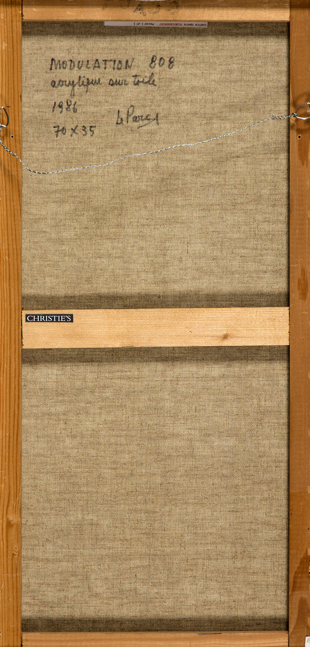 JULIO LE PARC 1928 Modulation 808, 1986 Acrilico su tela, cm. 70 x 35 Firmato e datato sul retro Etichetta Christie’s, sul retro Prov. Collezione Privata