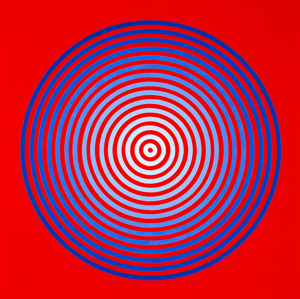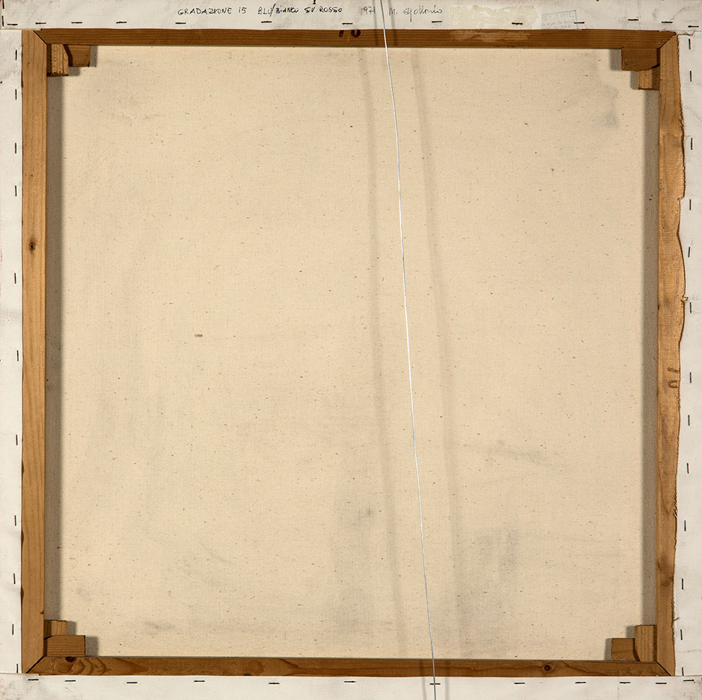 MARINA APOLLONIO 1940 Gradazione 15 blu/bianco su rosso, 1971 Acrilico su tela, cm. 70 x 70 Firmato e datato sul retro Timbro Galleria d’Arte dei Mille, Bergamo sul retro Certificato di Autenticità a cura dell’artista Prov. Collezione Privata