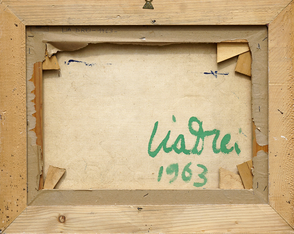 LIA DREI 1922 - 2005 Senza titolo, 1963 Tecnica mista e collage su tela, cm. 36 x 48,5 Firmato e datato sul retro Prov. Collezione Privata