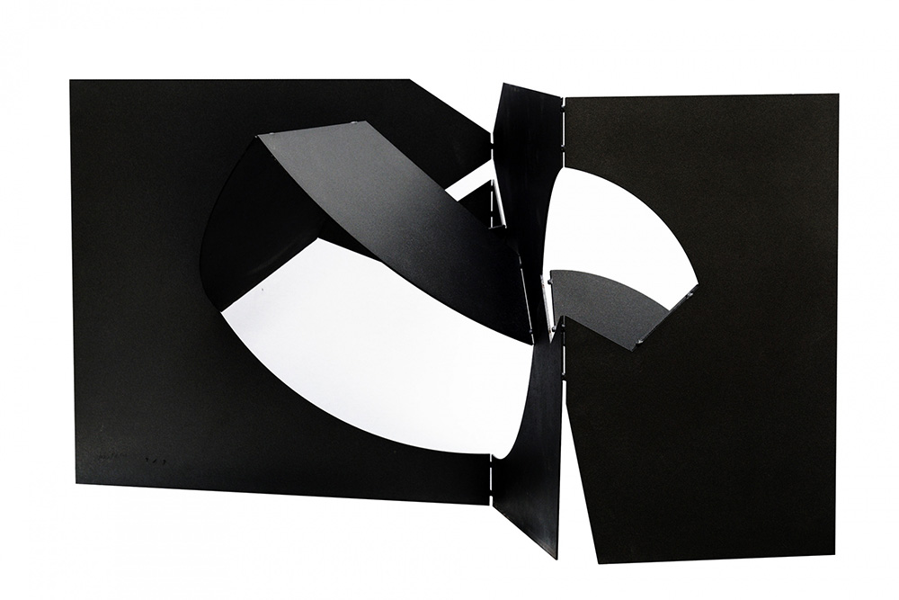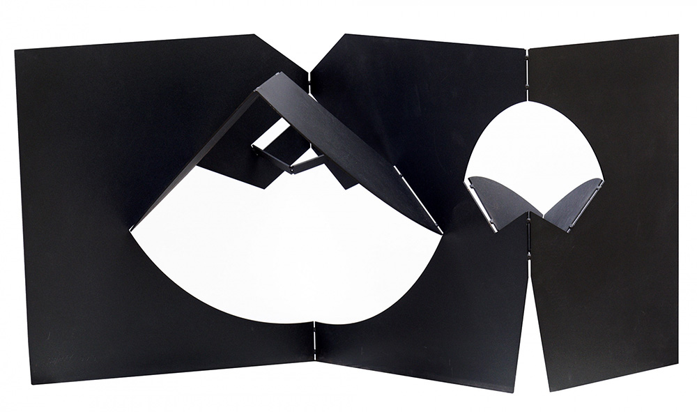 BRUNO MUNARI 1907 - 1998 Da una scultura da viaggio, 1959-85 Scultura in acciaio verniciato, cm. 38 x 72 x 33 Firmato in basso Opera n. 3/3 Autentica dell’artista su fotografia Prov. Collezione Privata