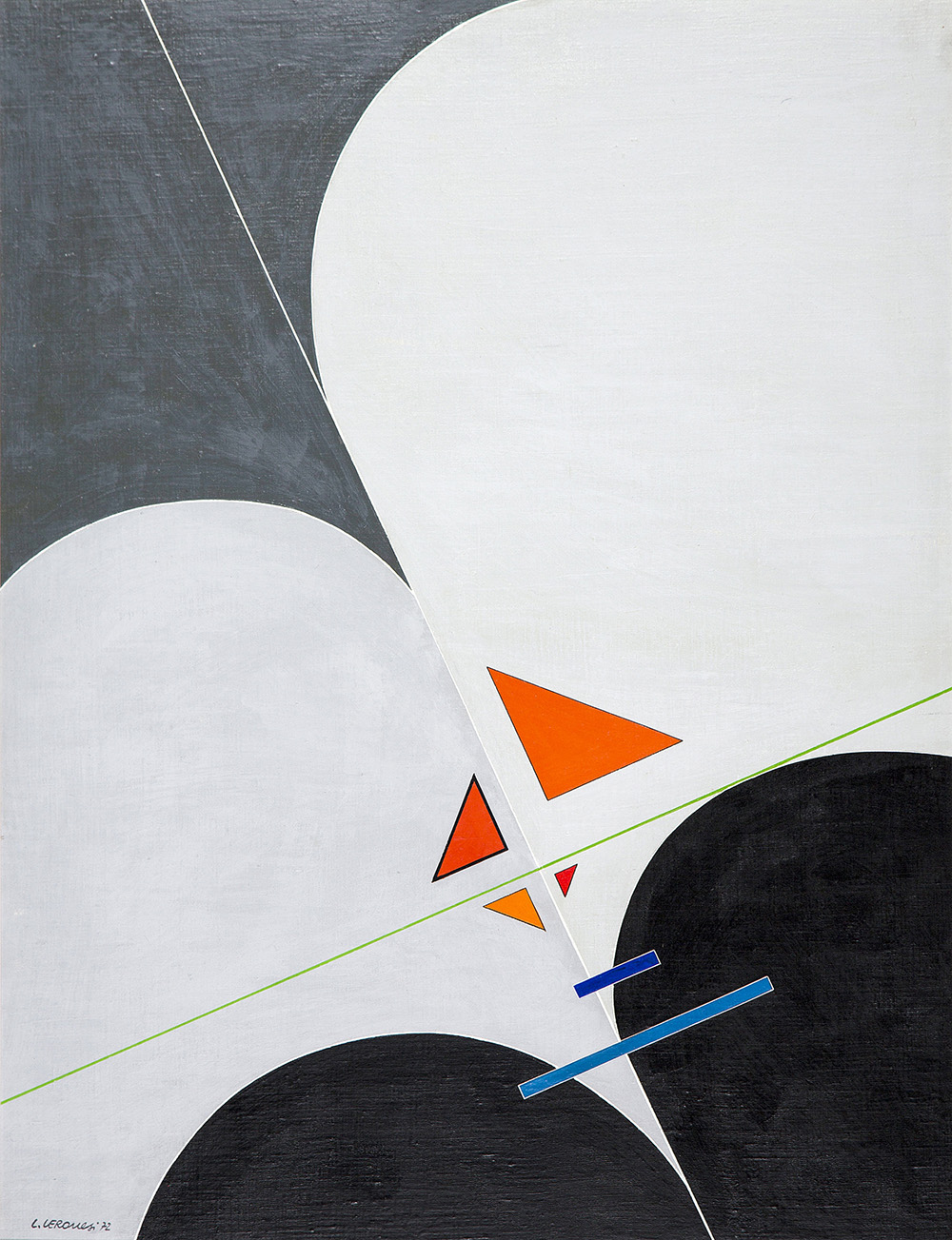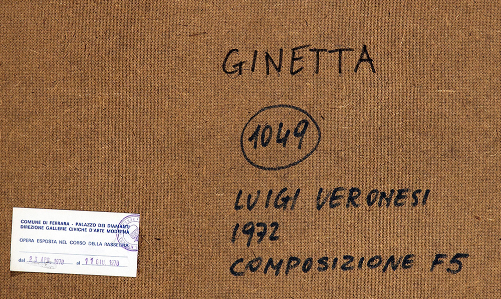 LUIGI VERONESI 1908 - 1988 Composizione F5, 1972 Olio su tela riportata su tavola, cm. 80 x 60 Firmato e datato in basso a sinistra Etichetta Direzione Gallerie Civiche di Arte Moderna, Ferrara sul retro Opera in fase di archiviazione presso il Comitato Luigi Veronesi ESPOSIZIONI: “Luigi Veronesi”, Galleria Civica d’Arte Moderna - Palazzo dei Diamanti, Ferrara, aprile - giugno 1978 Prov. Collezione Privata