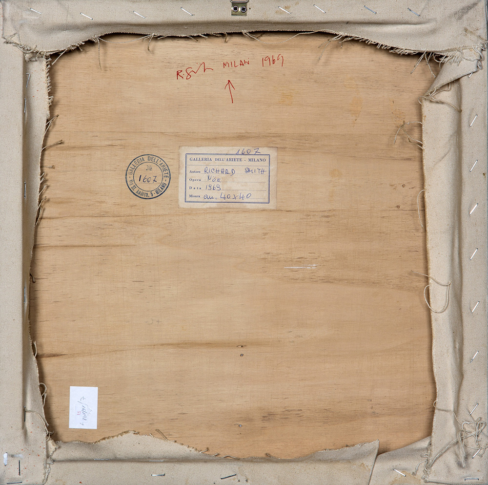 RICHARD SMITH 1931 - 2016 Nöe, 1969 Acrilico su tela estroflessa, cm. 40 x 40 Firmato e datato sul retro Etichetta e timbro Gallerie dell’Ariete, Milano sul retro Prov. Collezione Privata