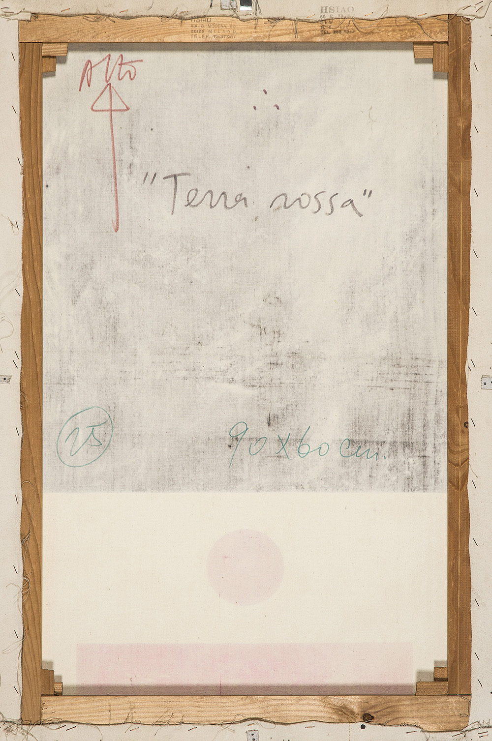 HSIAO CHIN 1935 Terra rossa, 1962 Tecnica mista su tela, cm. 90 x 60 Firmato e datato in basso al centro Timbro dell’artista sul retro ESPOSIZIONI: “Concentrazione”, Chiesa Maggiore Sacrestia San Filippo Neri, Torino, 23 Aprile - 31 Maggio 1992 PUBBLICAZIONI: “To build the city of DIOCE whose terraces are the color of stars”, Centro Tibaldi, Milano, 1992, p. 77 Prov. Collezione dell’artista Prov. Collezione Privata