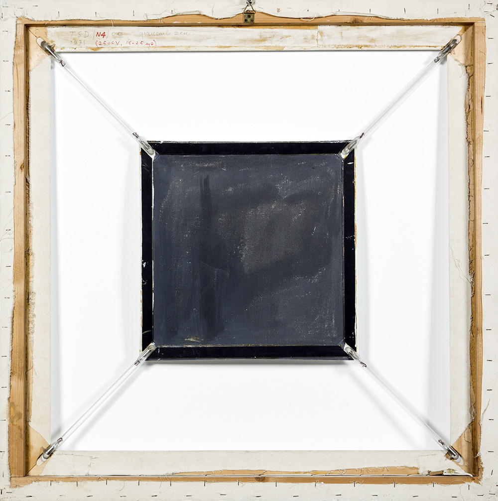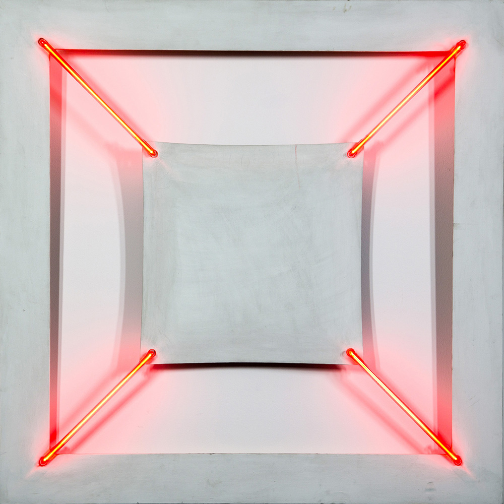GIANCARLO ZEN 1929 TDS/n.4/OO, 1971 Assemblaggio tela e neon, cm. 100 x 100 Firmato e datato sul retro ESPOSIZIONI: “Giancarlo Zen”, Galerie Denise René, Parigi, gennaio 1973 (opera pubblicata nell’opuscolo della mostra) Prov. Collezione Privata