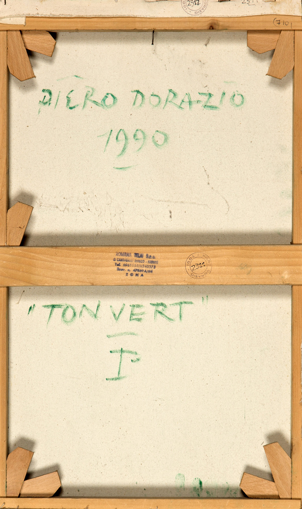 PIERO DORAZIO 1927 - 2005 Ton Vert 1, 1990 Olio su tela, cm. 60 x 40 Firmato...